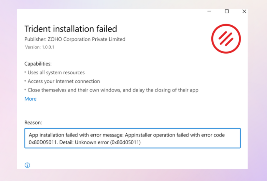 Appinstaller operation failed with error code 0x80D05011. Detail: Unknown error (0x80d05011)