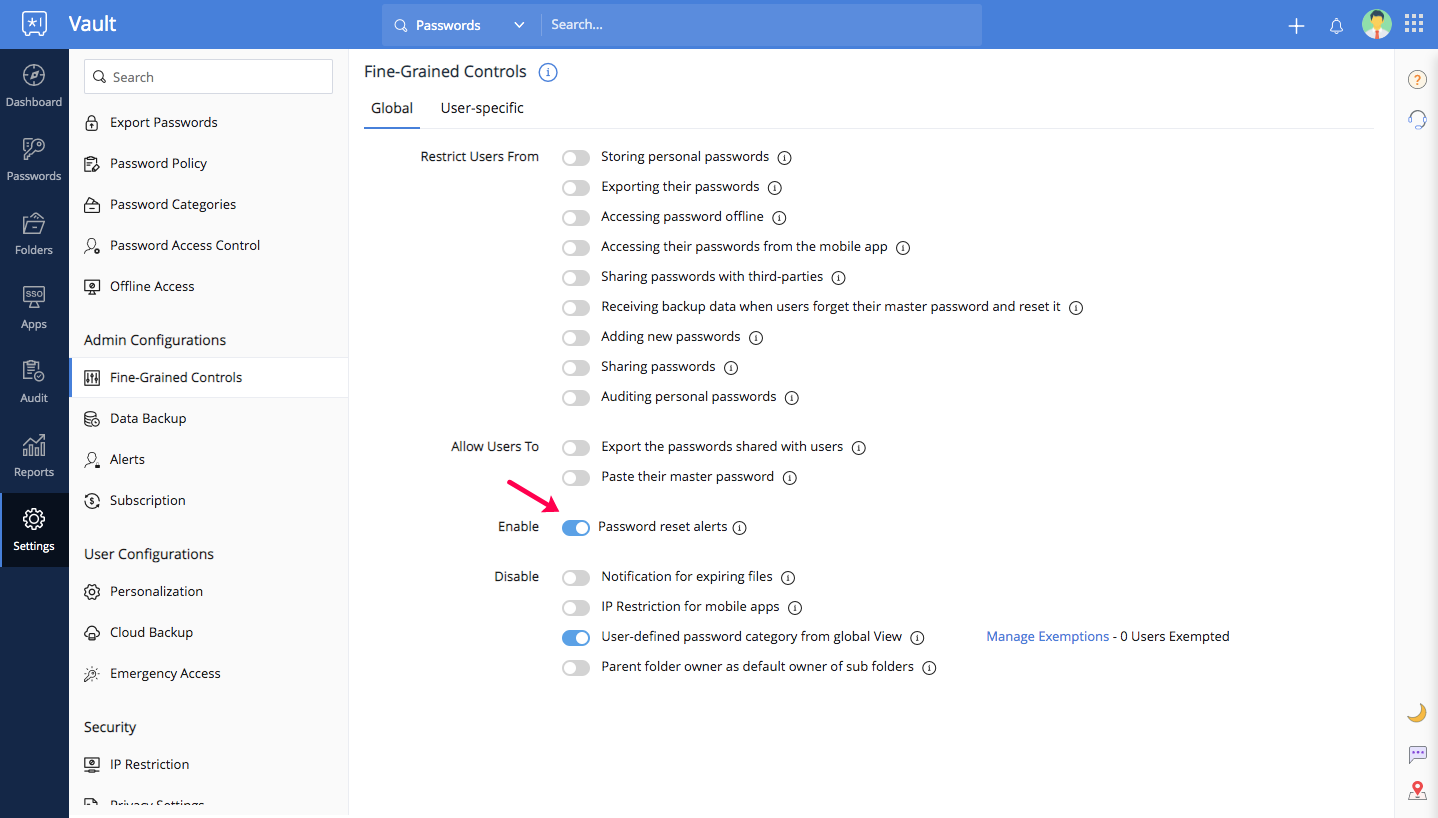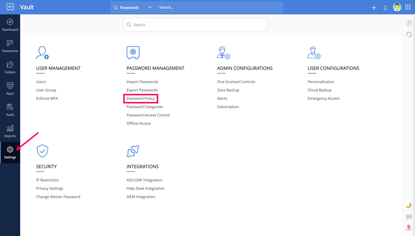 Note: The default validity of all passwords is 60 days.