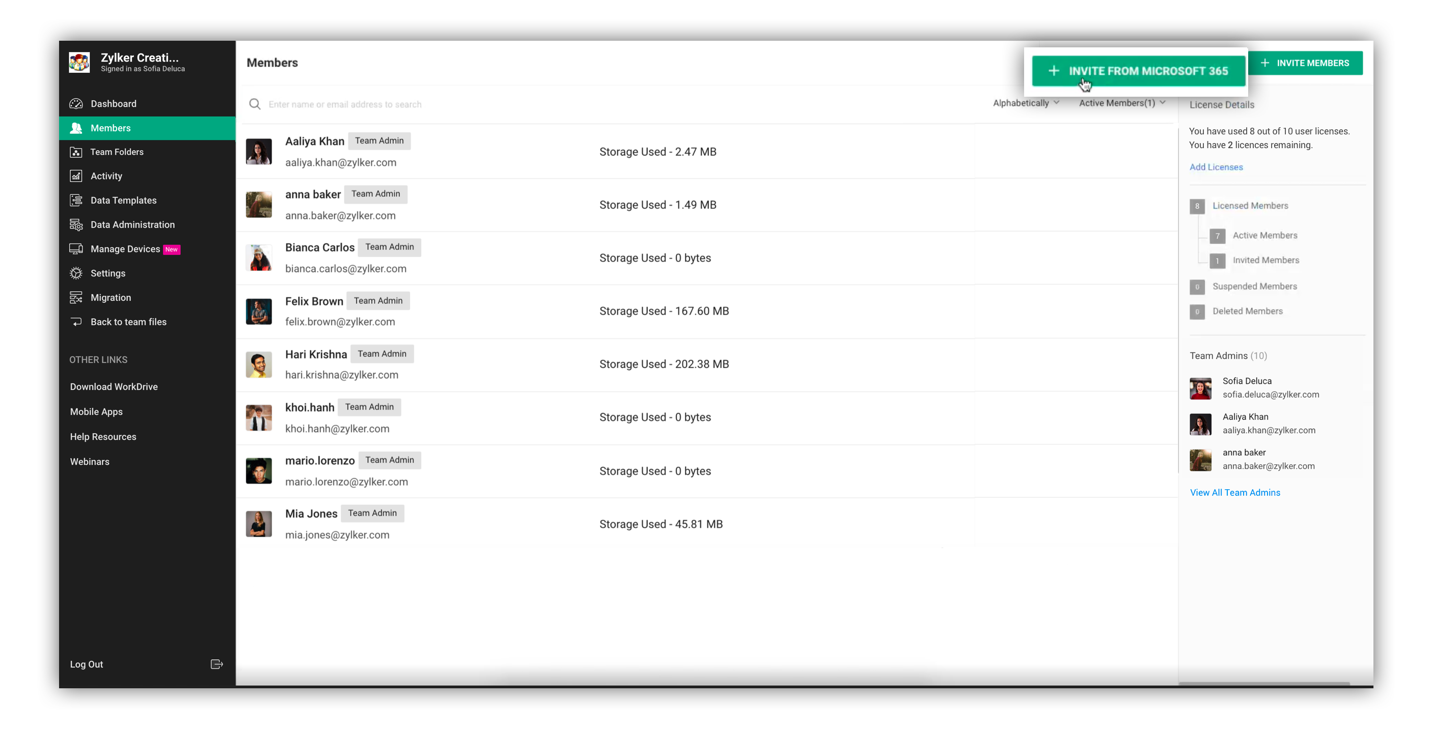 The Zoho WorkDrive application in Azure Marketplace will help you import users from Microsoft 365 directly into your Zoho WorkDrive account.