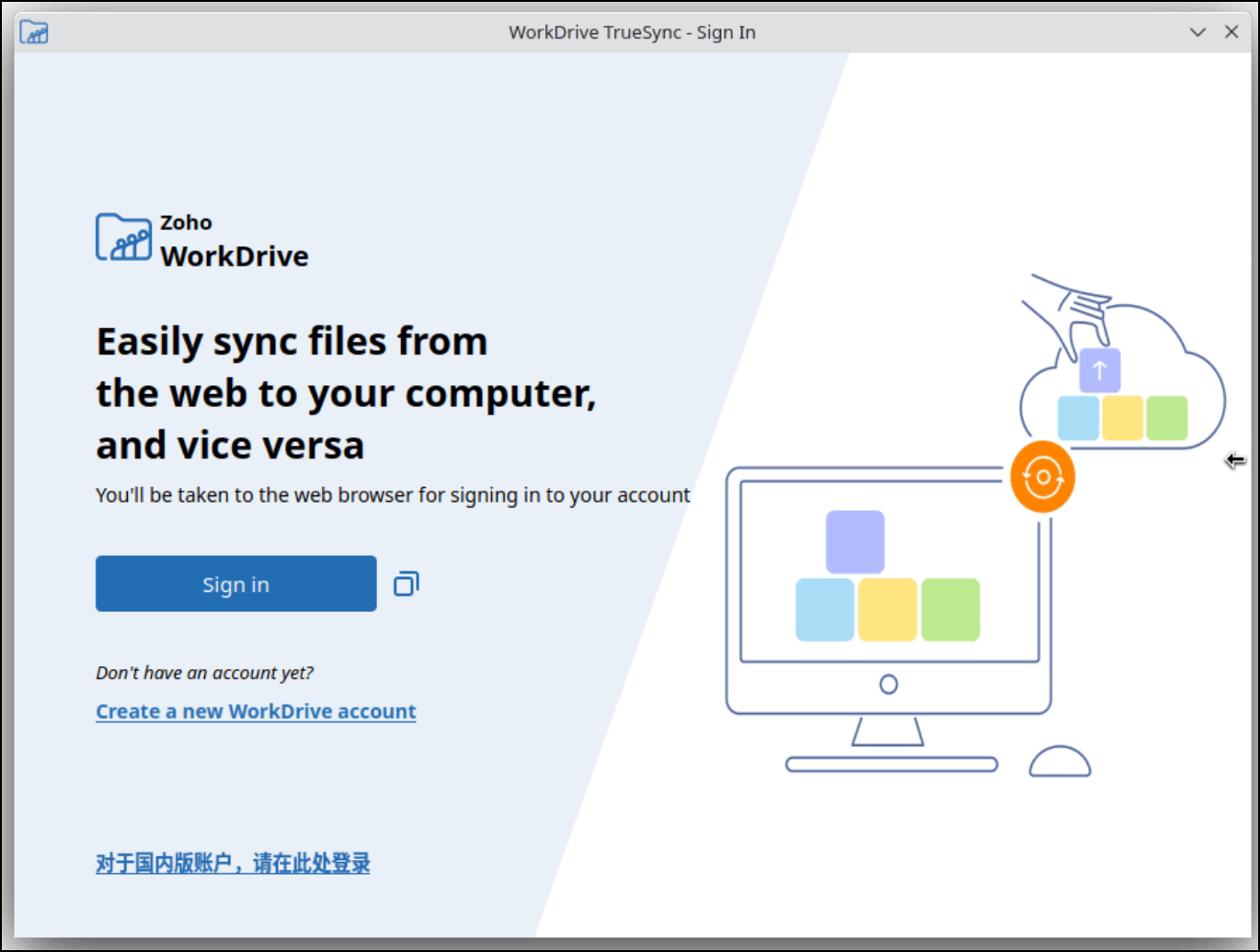 - Click Sign in. You'll be taken to the default web browser for signing in to your WorkDrive account.