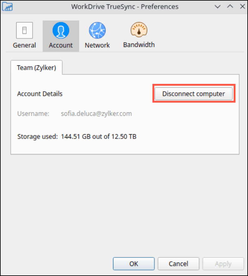 When you no longer wish to sync your Zoho WorkDrive account with a Computer, you can disconnect that Computer. When you disconnect a computer, the files will be removed from the computer and will be accessible on WorkDrive web.