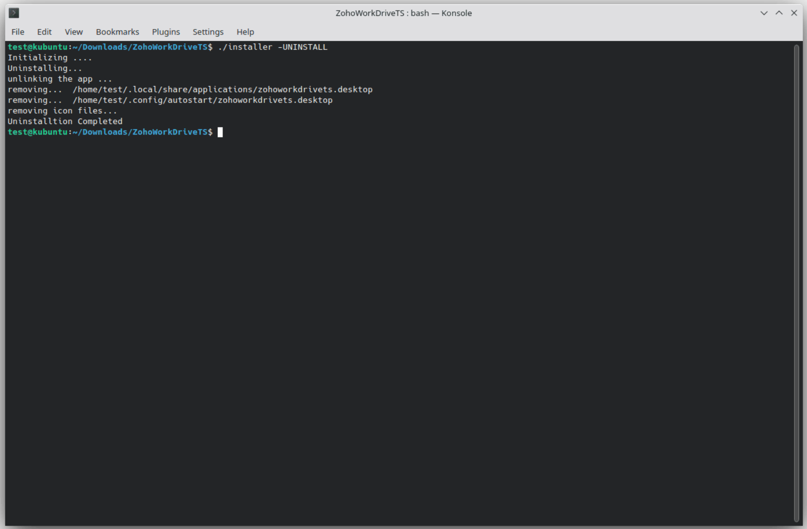 - In the extracted folder, open the terminal (without sudo) and run the command "./installer -UNINSTALL".