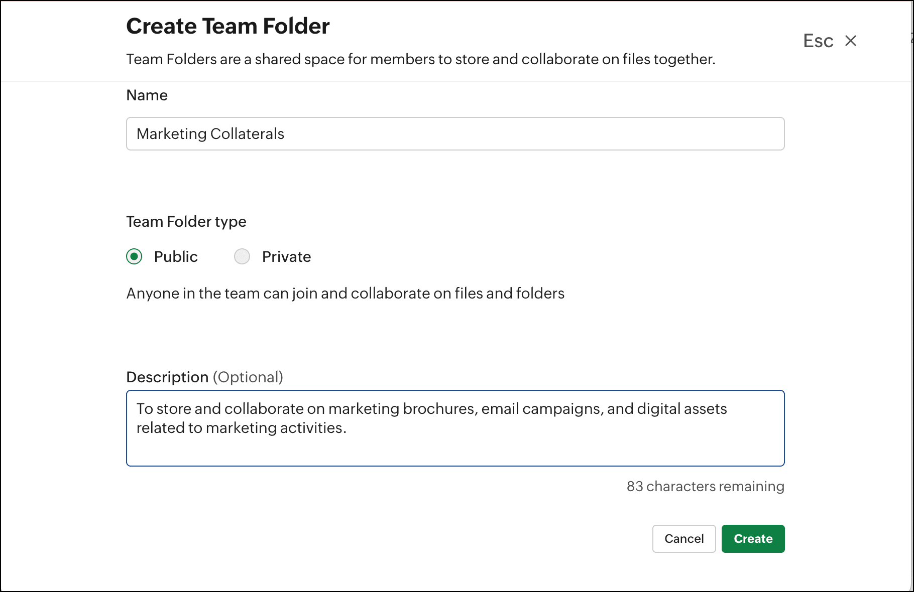 Then, include a short description of your Team Folder so that your members know what it's about. (Optional)