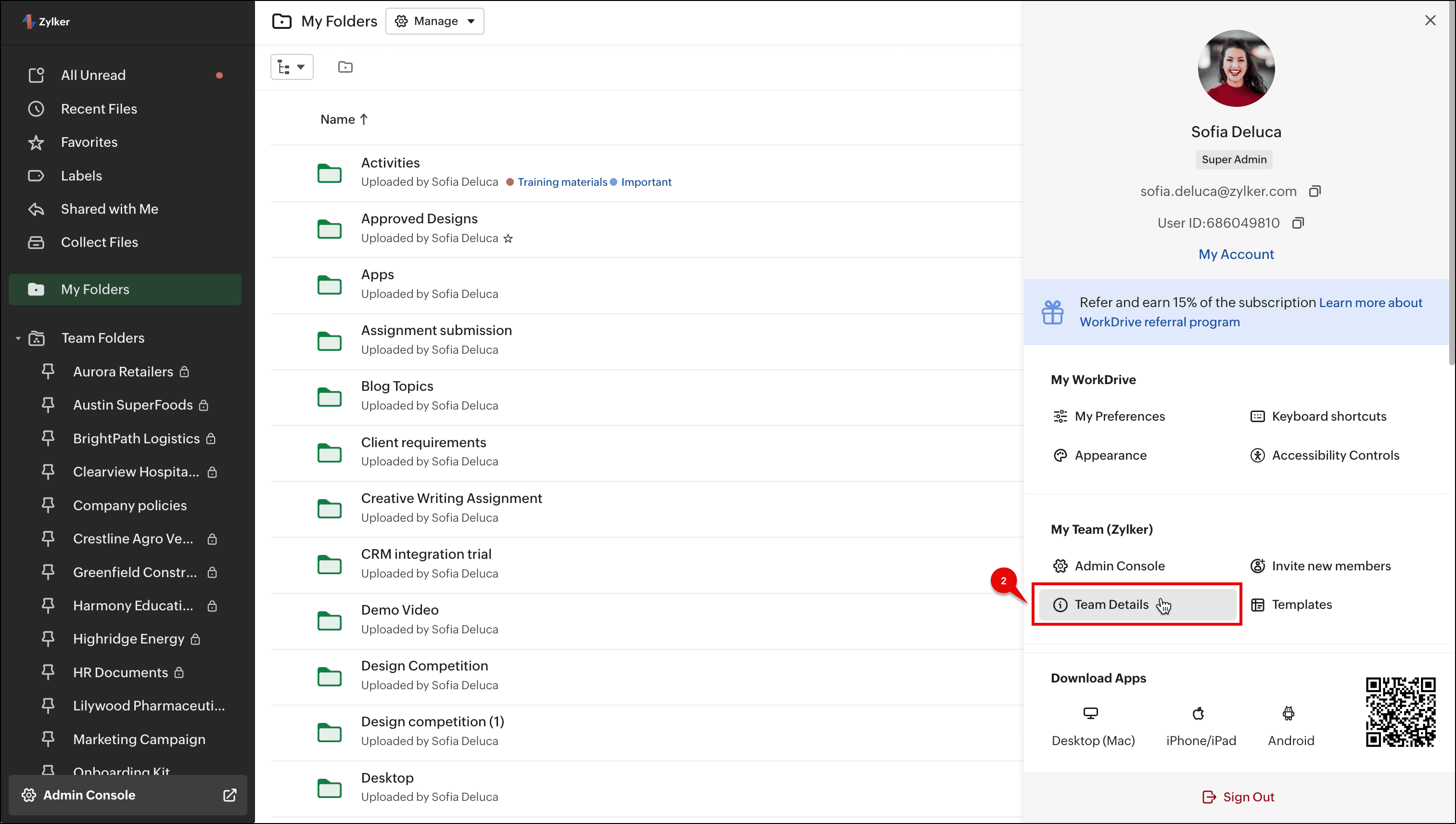 1. Click your profile picture in the top-right corner, then select Team Details .