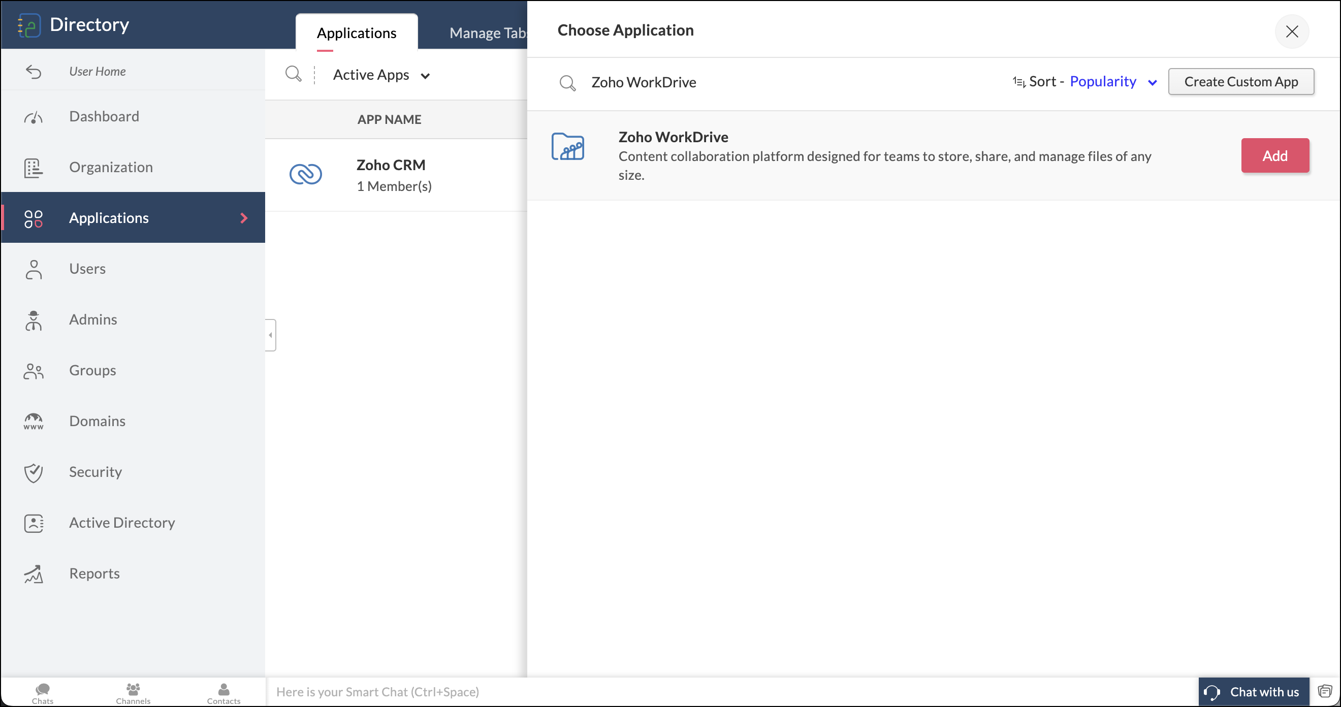 3. Search for and select Zoho WorkDrive from the list of supported apps, and click Add.