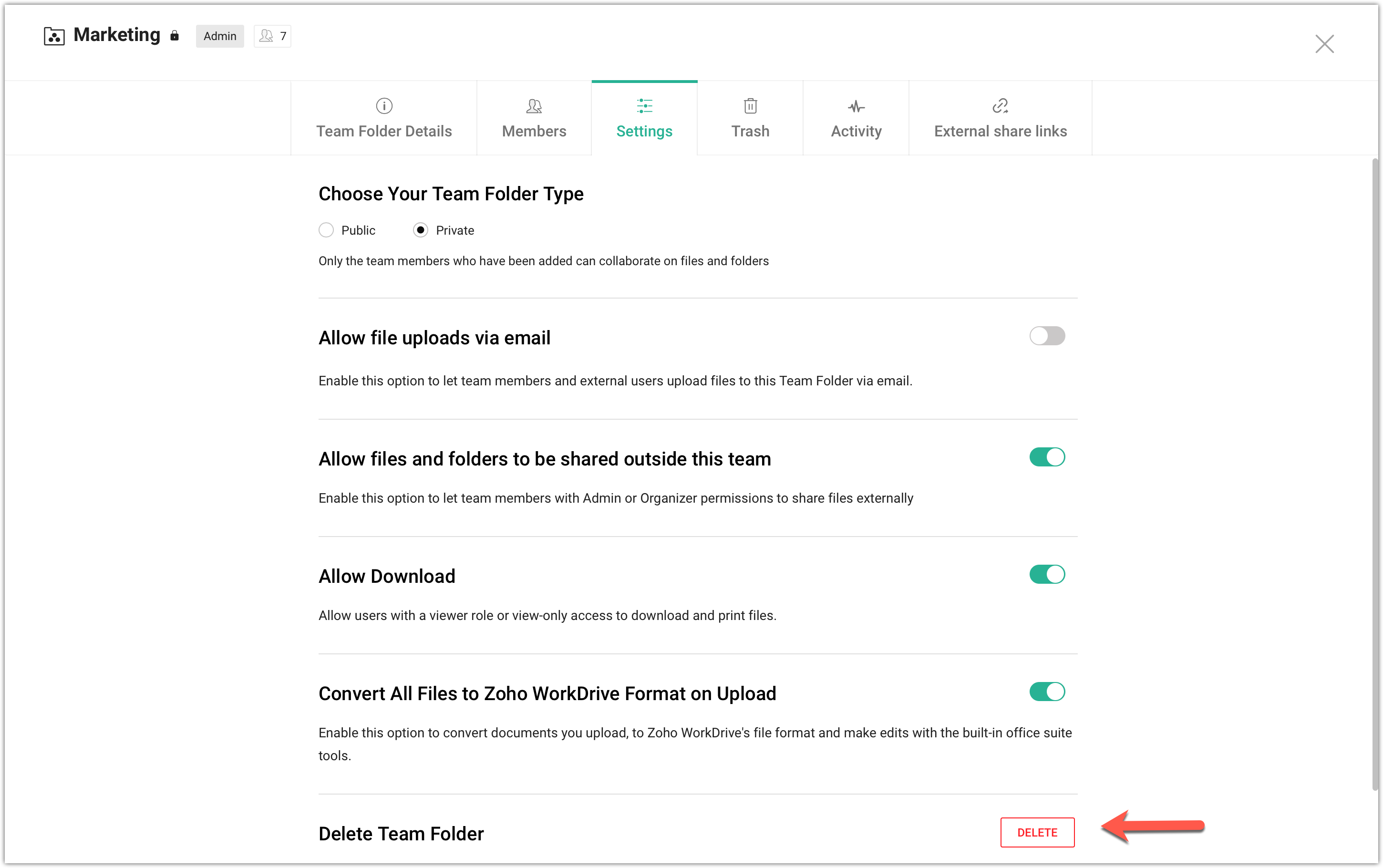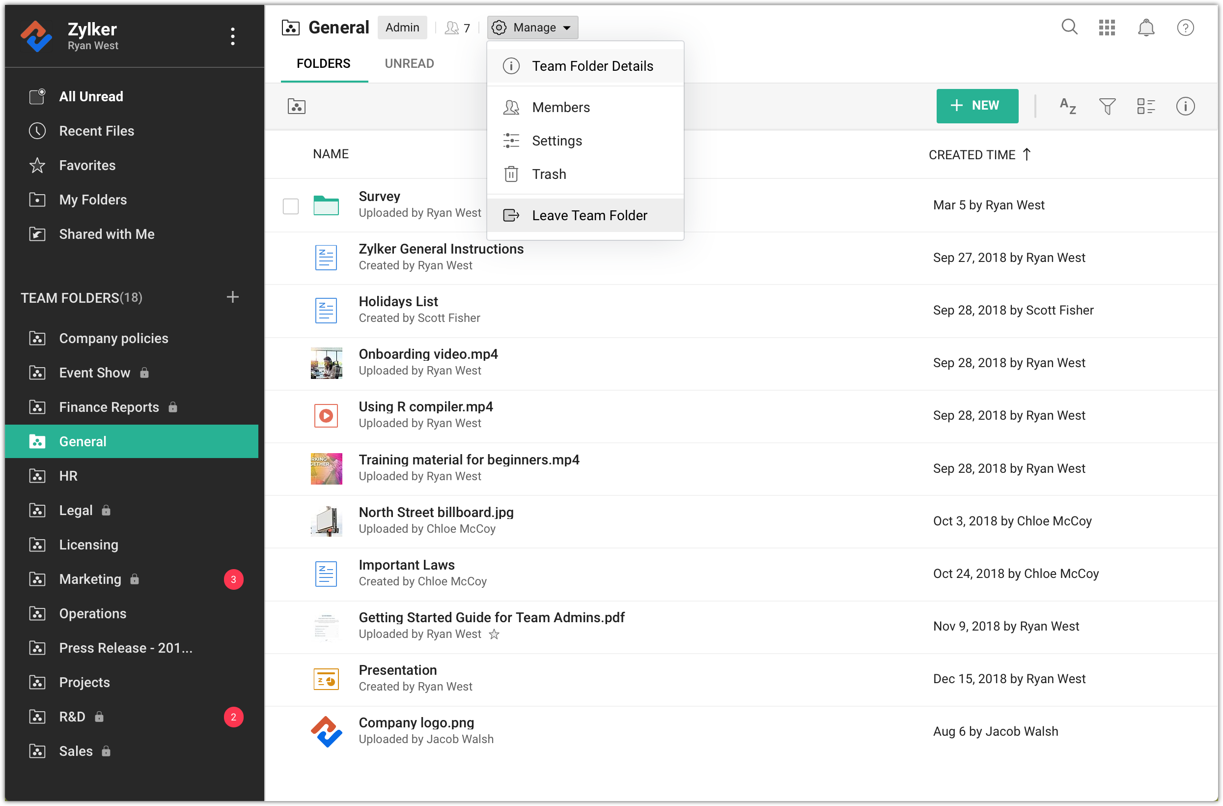 Once you've completed projects and met deadlines, you can delete Team Folders that take up your storage space. If there's a team or department that gets dissolved after the completion of a project, you can opt for deleting the Team Folders that belong to that particular group.