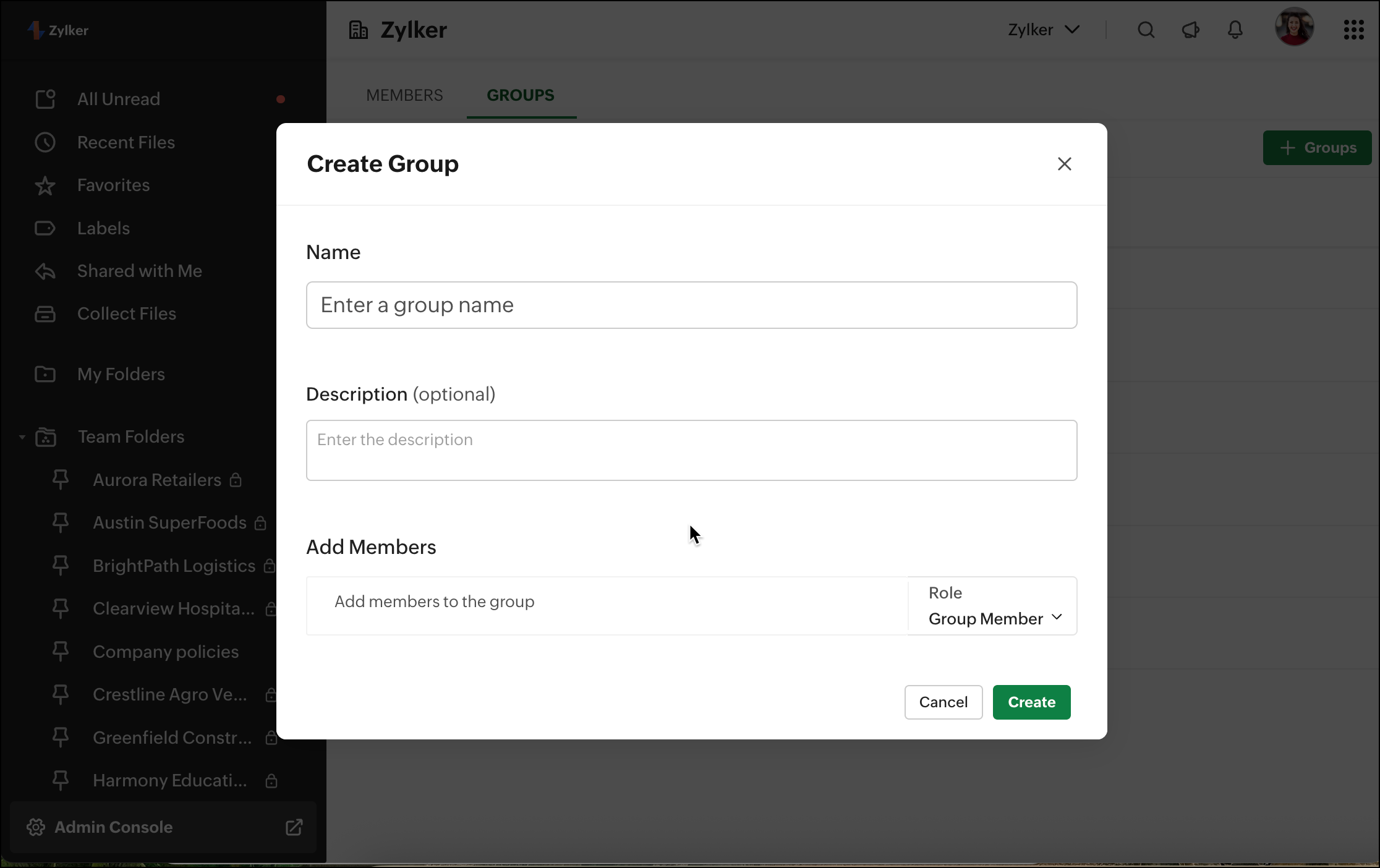 You can create Groups based on member roles or profiles, and add them to Team Folders to simplify collaboration.