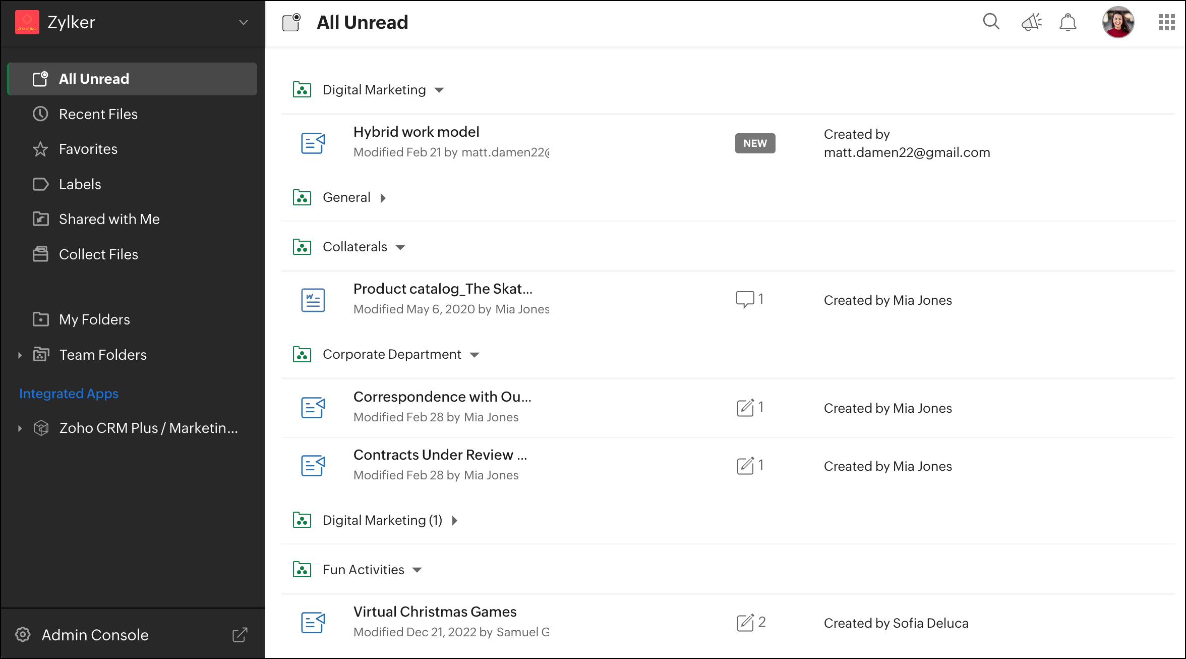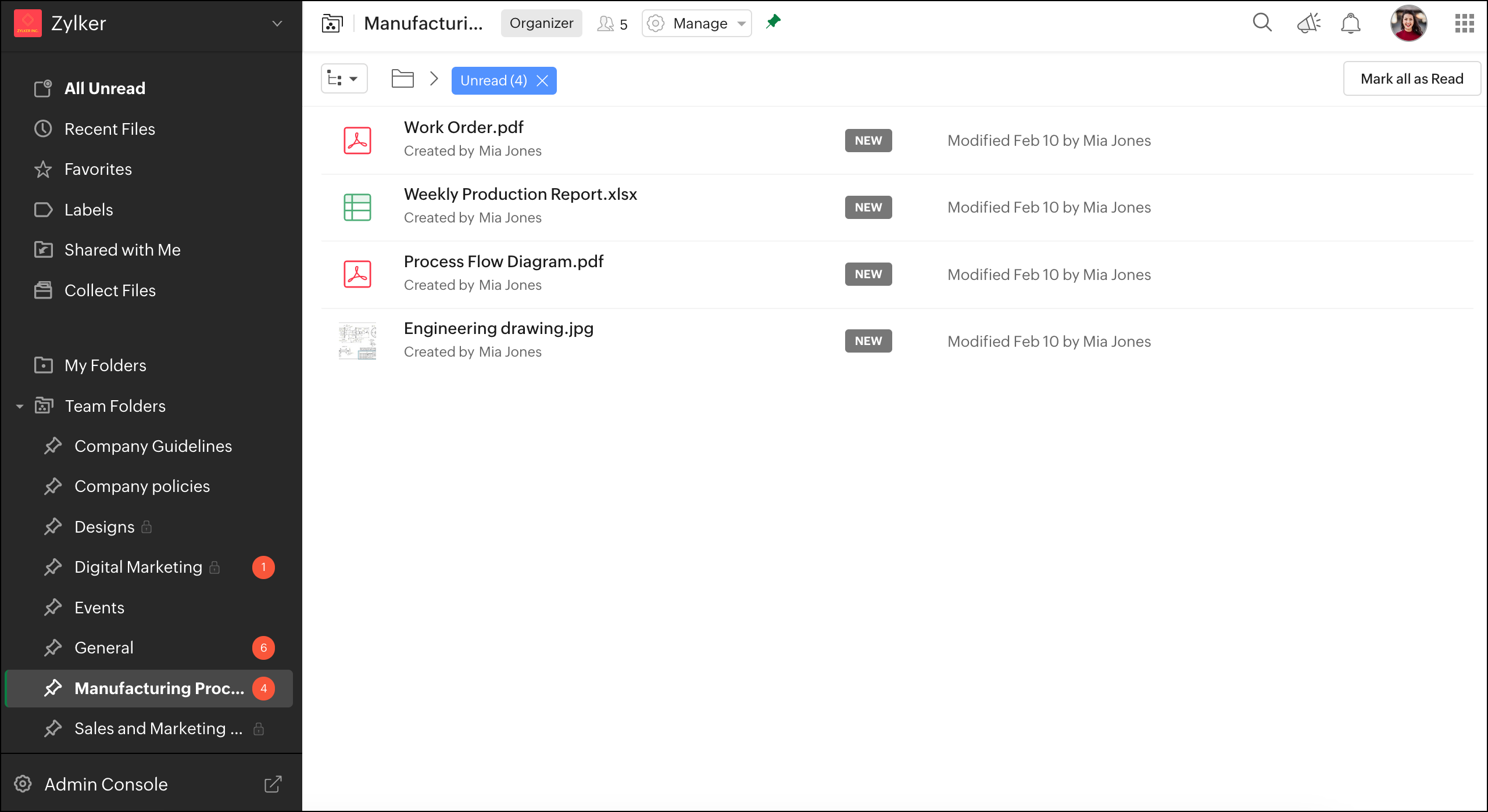 Unread Notifications will help you stay updated on all files that have been added or modified in the Team Folder since your last visit.