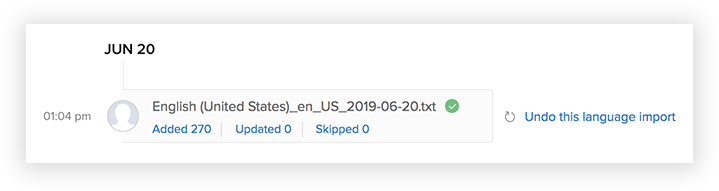 A complete list of files that have been imported up to the current date is available under Language Import History. The imported language files are arranged in a chronological order with the most recent ones on top.