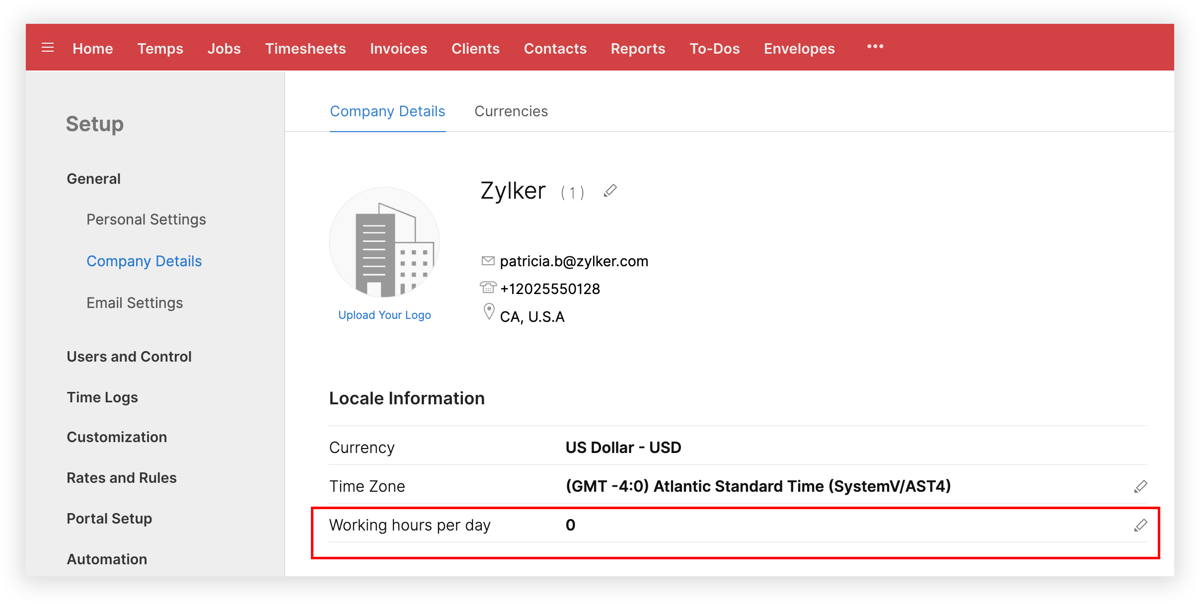 Full Day and Half Day rates are calculated according to the Working Hours you add on your company details page. Follow the steps below to add working hours: