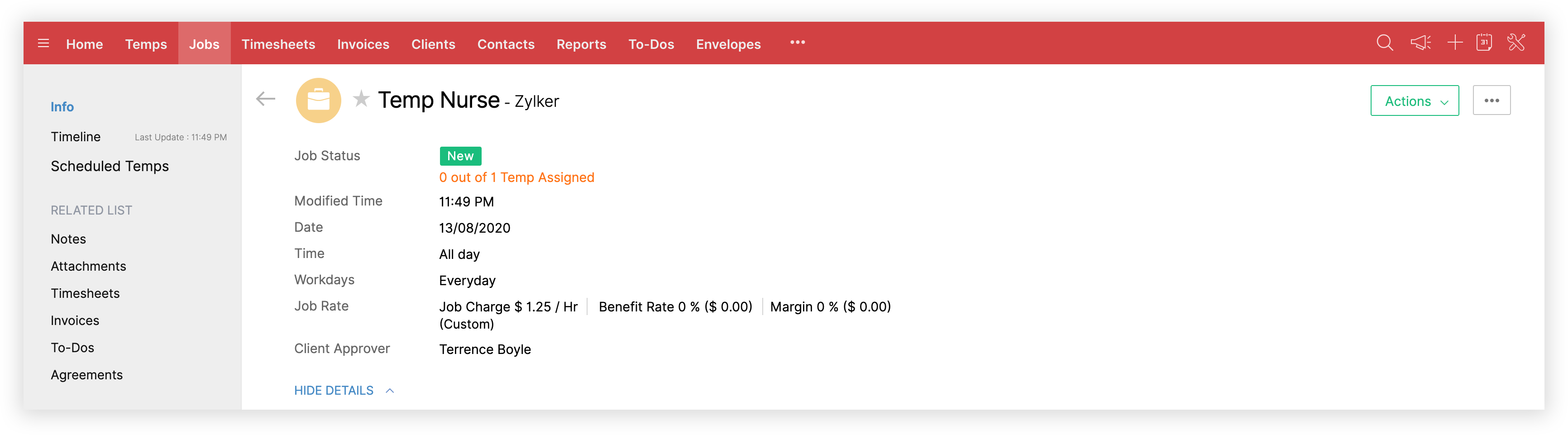 As you complete the job creation, you can view the job details along with the number of temps scheduled.