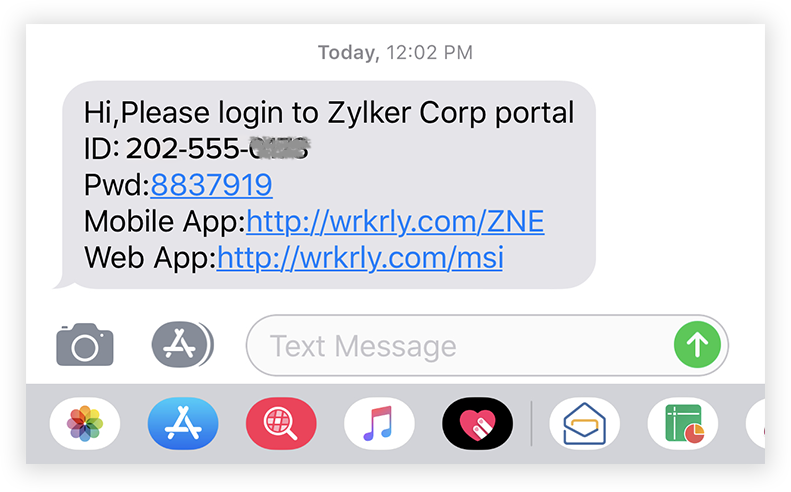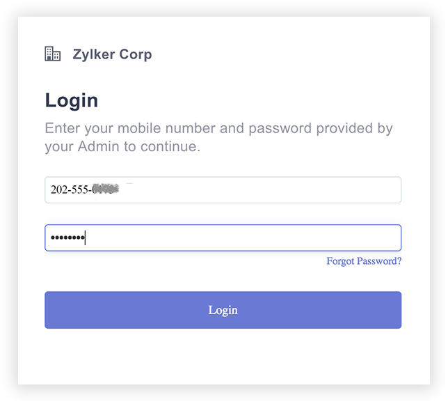 Temp will be taken to a new page where they will be asked to login with the credentials shared via SMS.