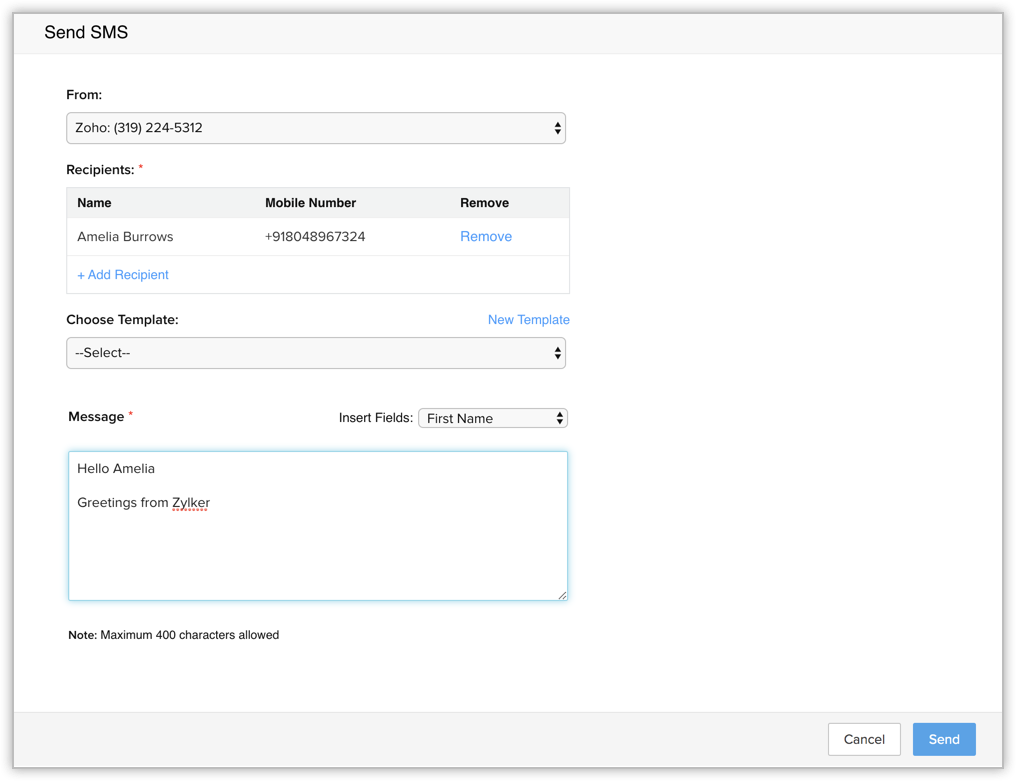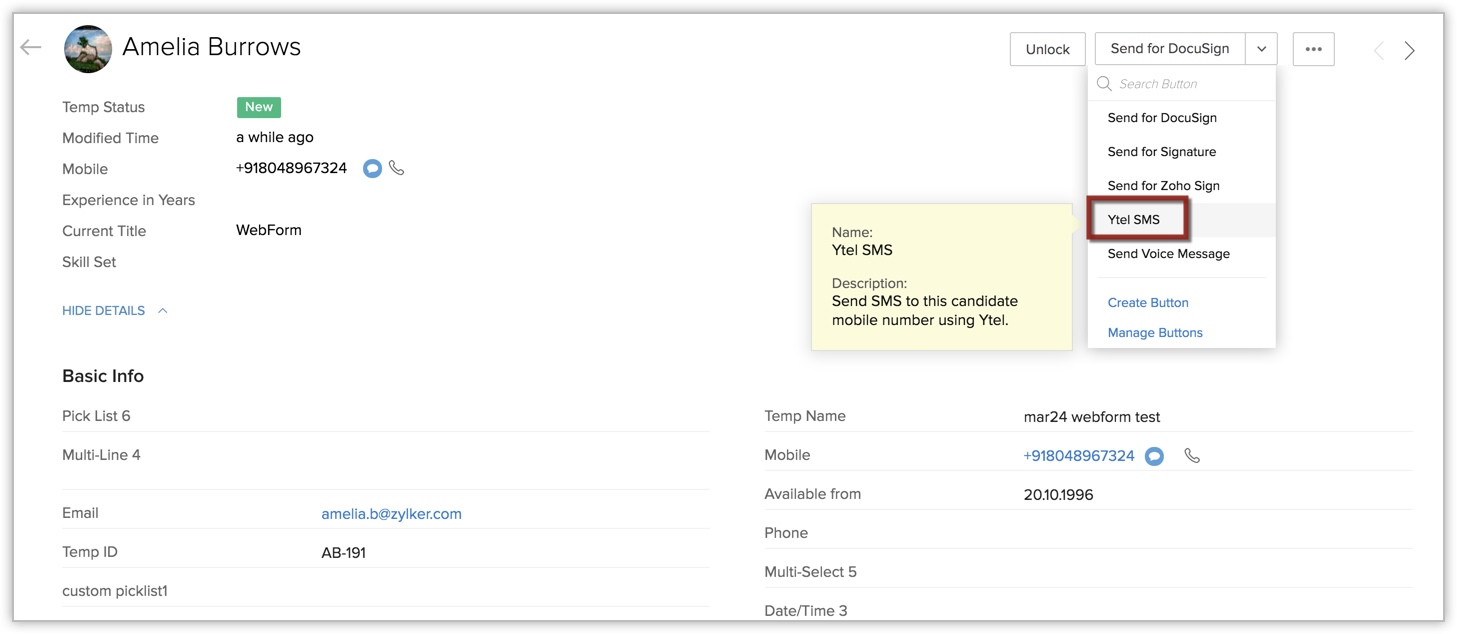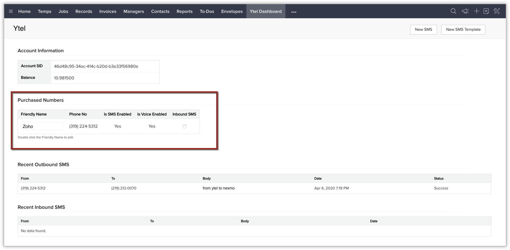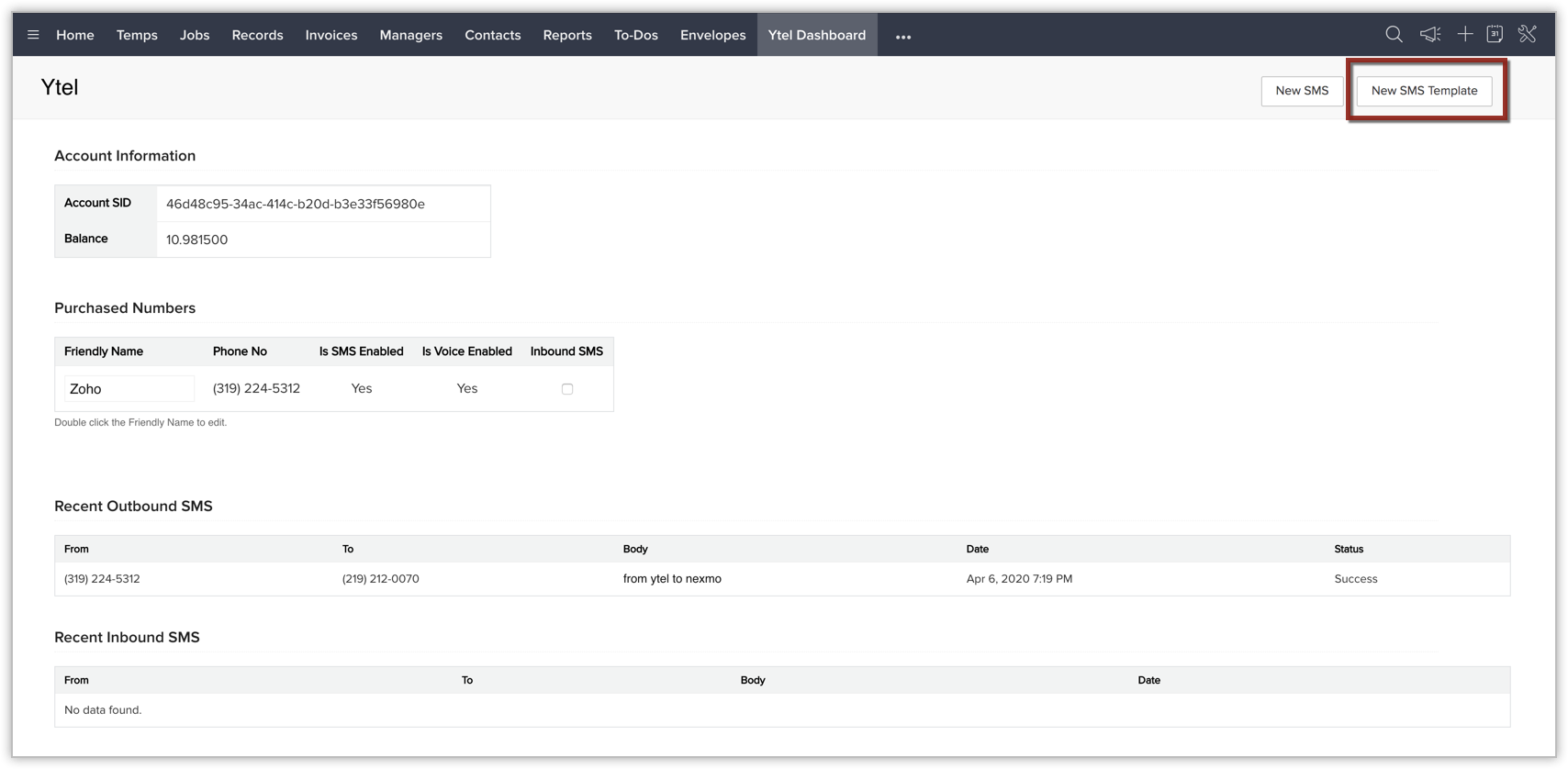 Messages from numbers that are not in your contacts or temps will be added as a new record in the Temps module.