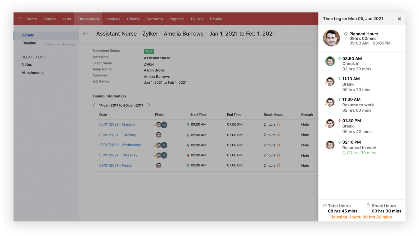 NoteWhile enabling photo logging for temps, agents are advised to ensure that temps are aware and have agreed on capturing their photograph while logging work hours. It is to ensure temps' privacy and getting consent in prior will avoid any legal implications. Please remember, photo logging is to help agents from reducing the chance of buddy punching and time theft.