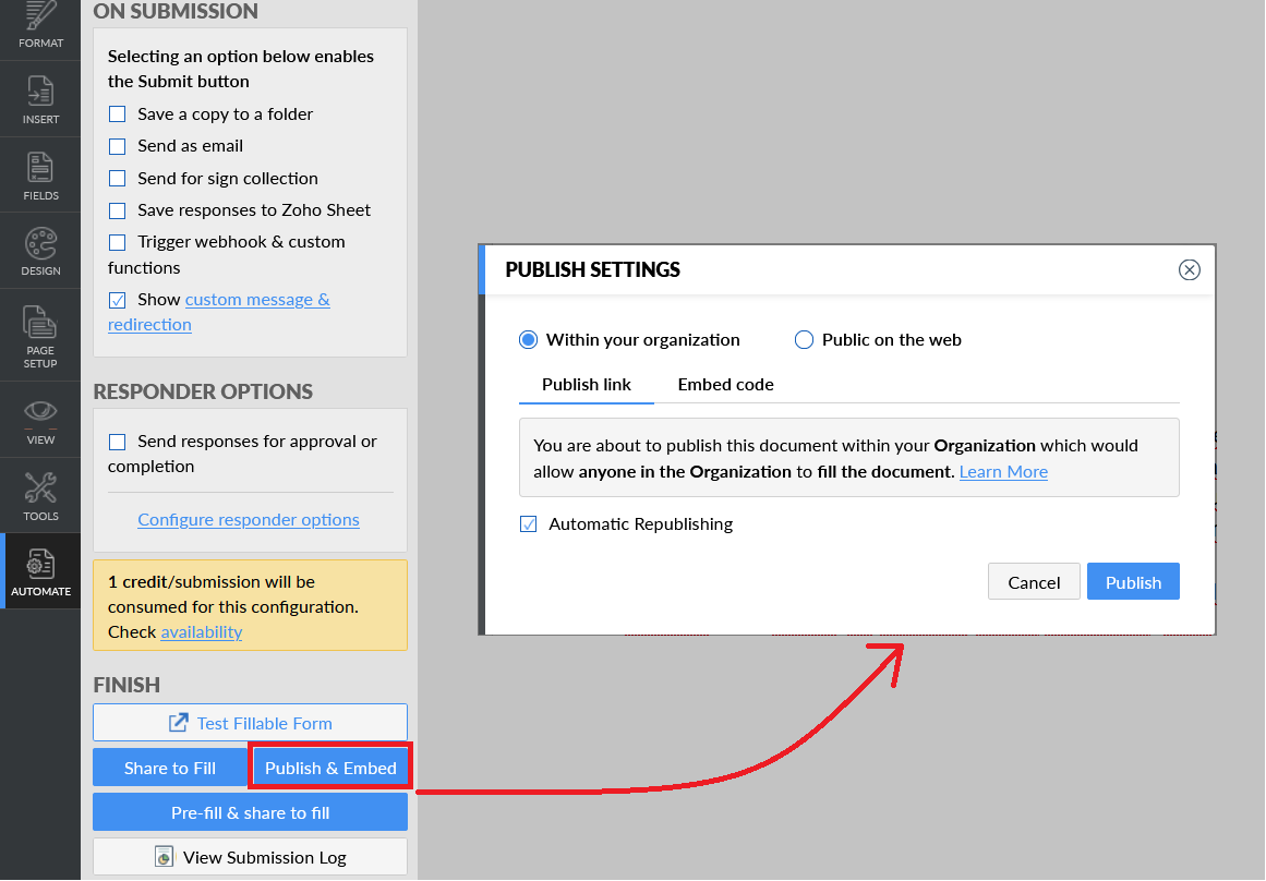 3. Click "Publish & Embed".
