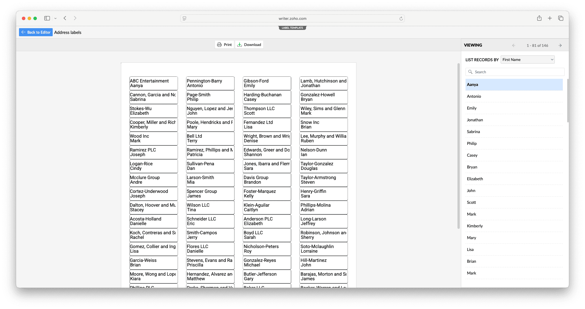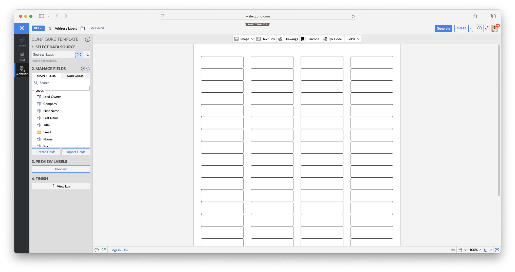 Overview Zoho Writer allows you to create professional labels by pulling data directly from Zoho CRM. Whether you need shipping, mailing, or product labels, you can merge information from CRM's modules and generate personalized labels. Some scenarios ...