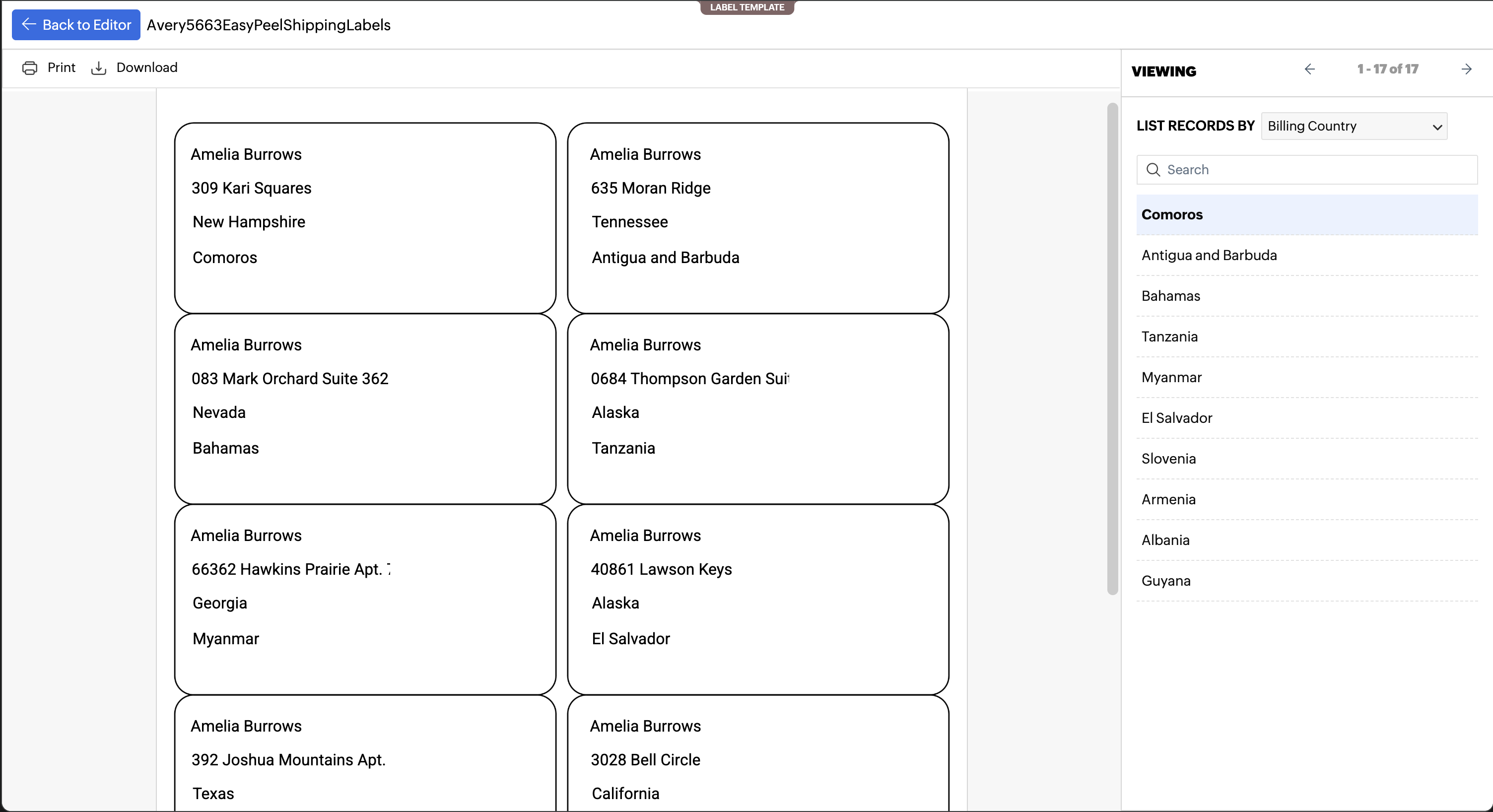 2. Click Preview to preview the generated labels. You can print or download the labels from the Preview screen.