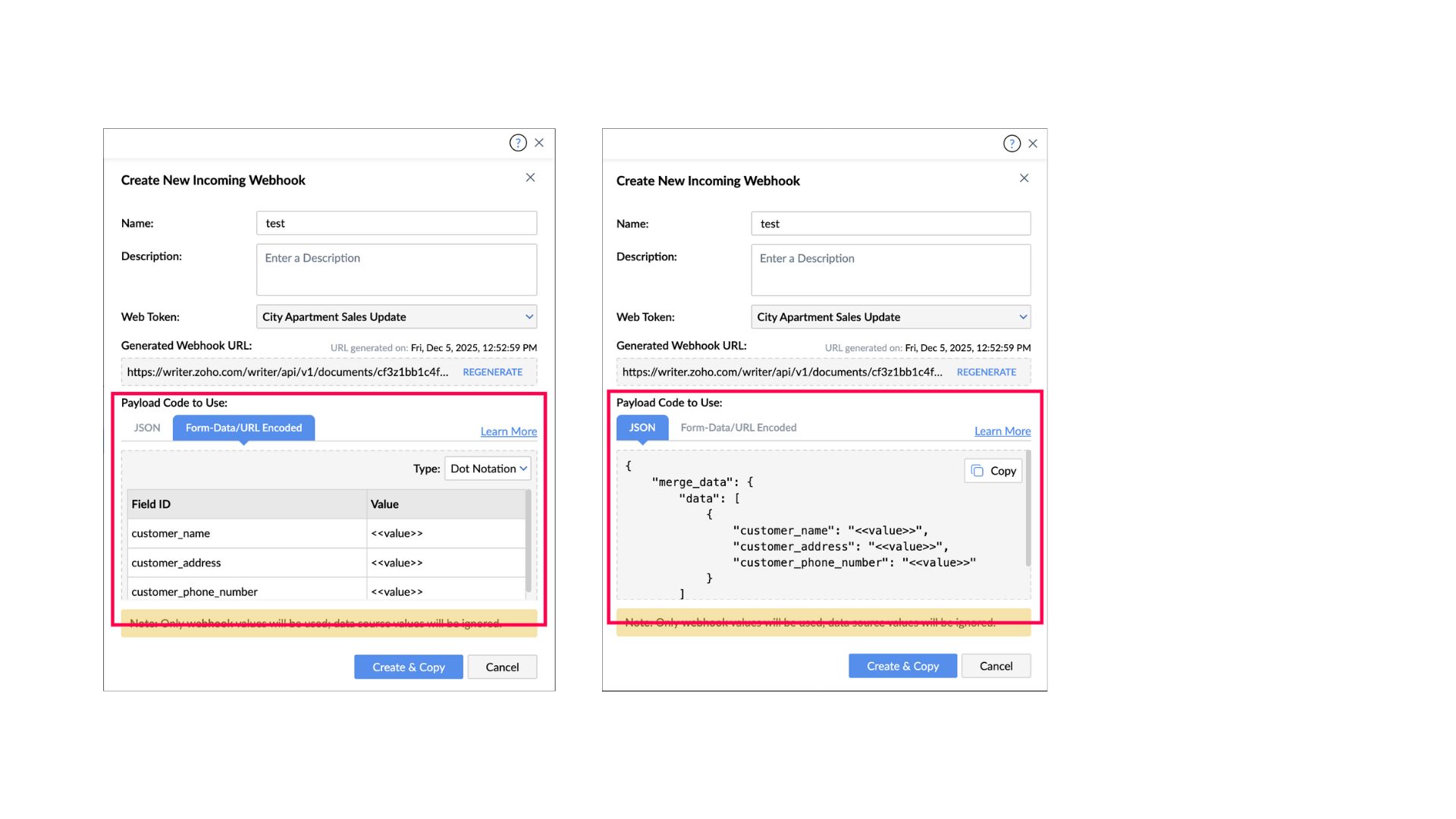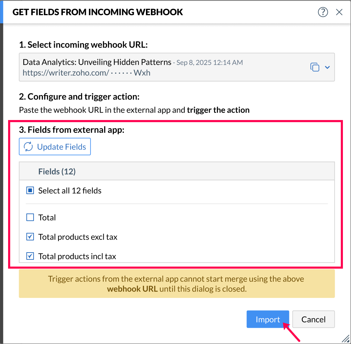 Some expected fields missing | Payload has nested or renamed keys | Trigger payload again and click Update Fields |
