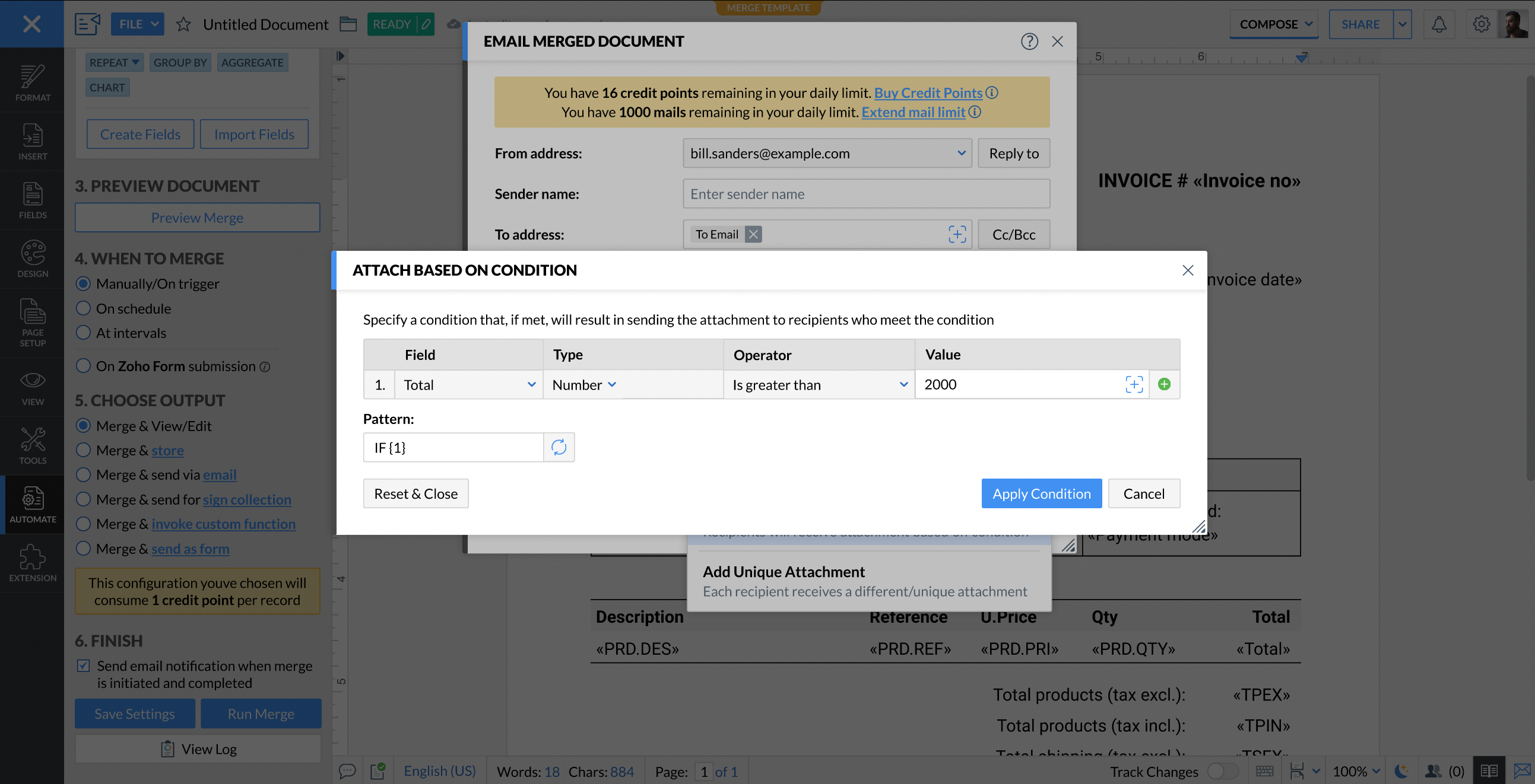 Steps to email the merged document