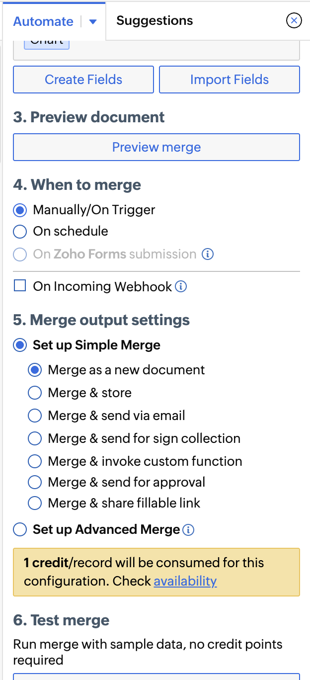 How to trigger document merge in Zoho Writer