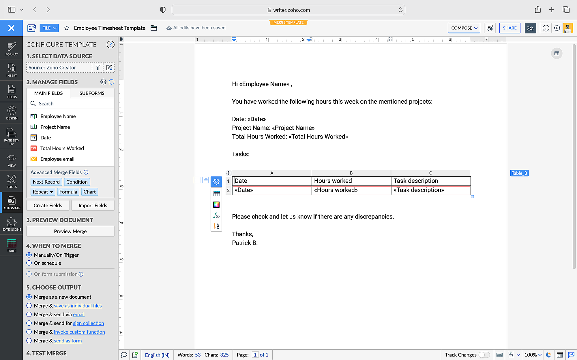Overview Zoho Writer document merge can be triggered in four ways: manually, on a schedule, on form submission, or via an incoming webhook. This flexibility allows you to choose the most suitable automation method—whether you want to merge documents ...