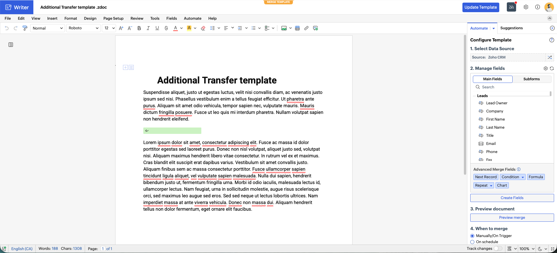 How to use PDF document as template for merge with CRM data