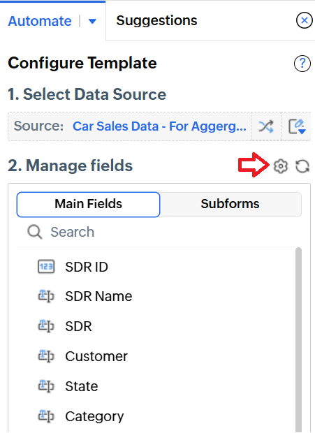 Step 3. To to Manage Fields, click the Settings icon, and select Manage Fields.