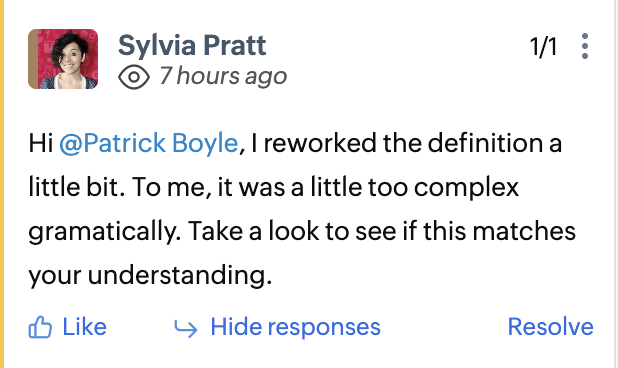 - Click the comment you wish to resolve and click Resolve.