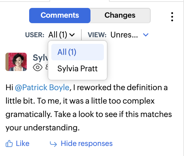 - Choose the collaborator's whose comments you wish to see.