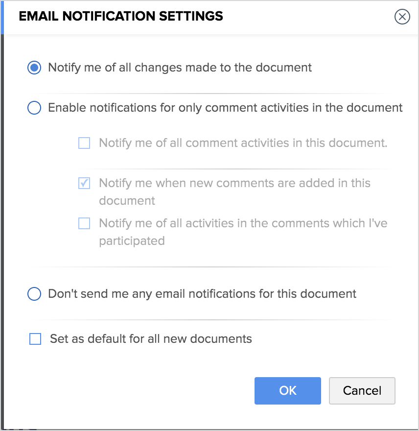 5. Select the Set as default for all new documents checkbox to save the notification rule for all your documents.