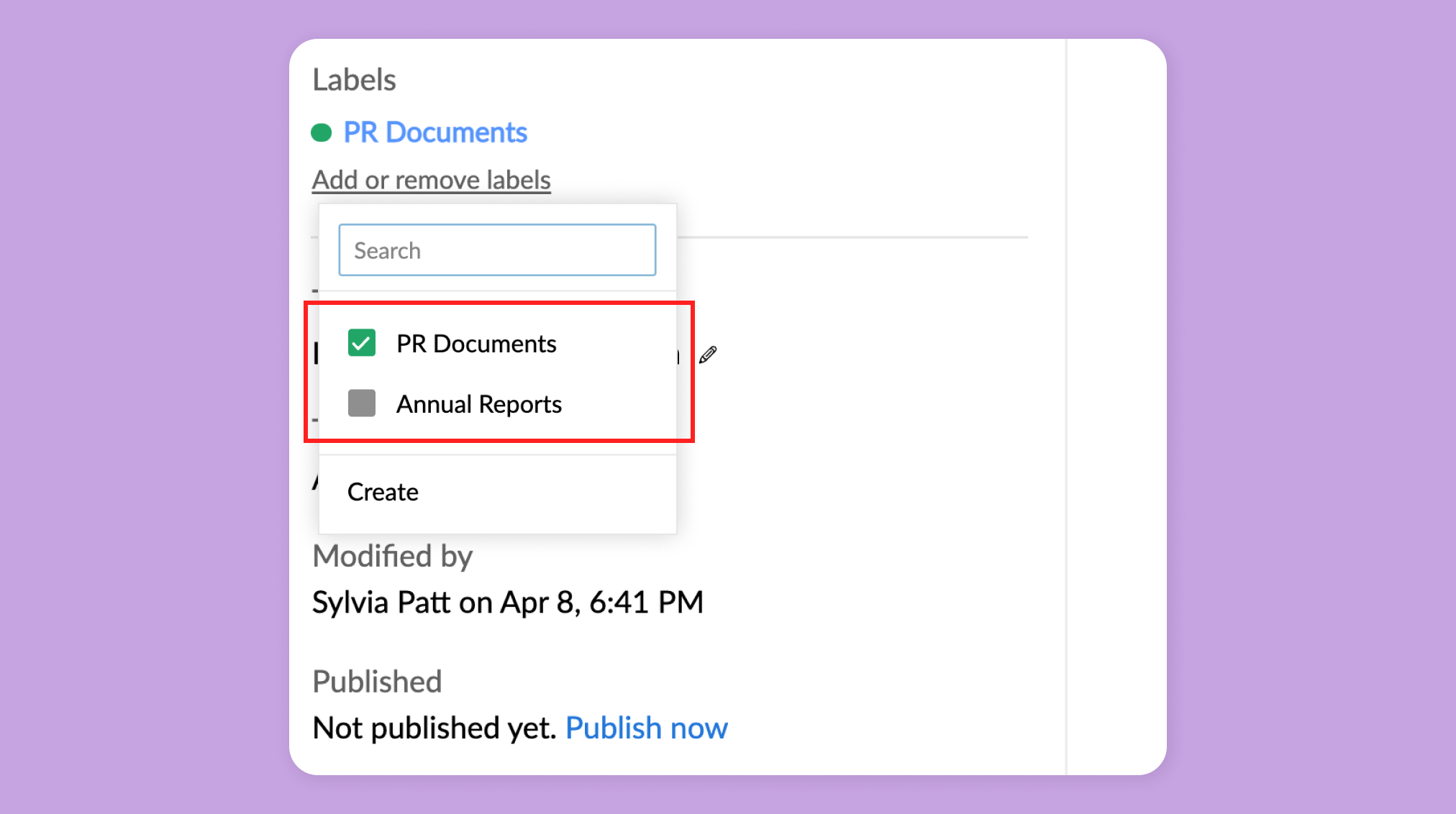 4. To add or remove labels applied to the document, check or uncheck the labels that you wish to add or remove.