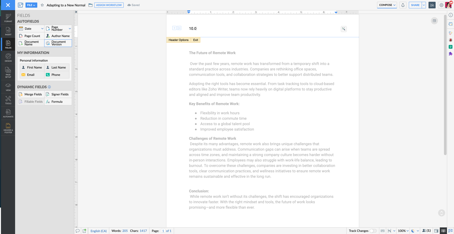 Show the version number on every page so collaborators instantly know they’re working on the latest document. This minimizes confusion and keeps your review and approval process organized.