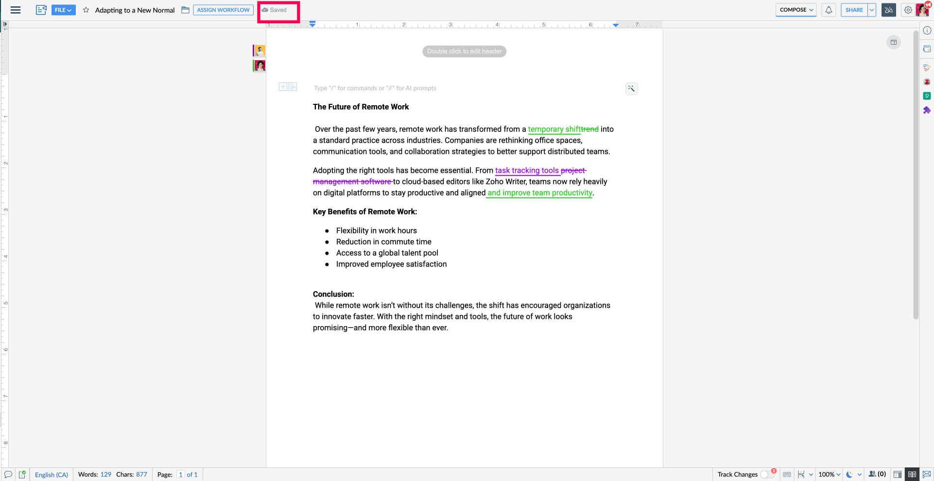 - Watch: Track Changes in Zoho Writer