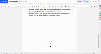 Zoho Writer's Zia has become even more powerful with the integration of cutting-edge generative AI, powered by Zoho's own generative AI for content generation. This means that Zia can now provide more advanced writing assistance, such as generating content ideas, suggesting improved sentence structure and vocabulary, and even providing translations. With Writer's user-friendly interface and Ask Zia's easy-to-use prompts, you can create content, respond to emails, and craft pages, modify the entire or a part of your document's content, etc. more efficiently than ever before.