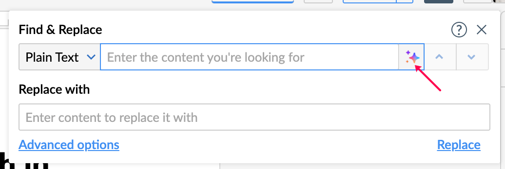 Click the Semantic Search (AI) icon or open Advanced Options > Find Similar Content.