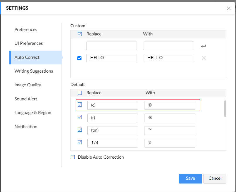 Autocorrect in Zoho Writer automatically fixes spelling, typos, and formatting as you type, keeping your documents professional and consistent. You can customize it to match your writing style. This is useful in