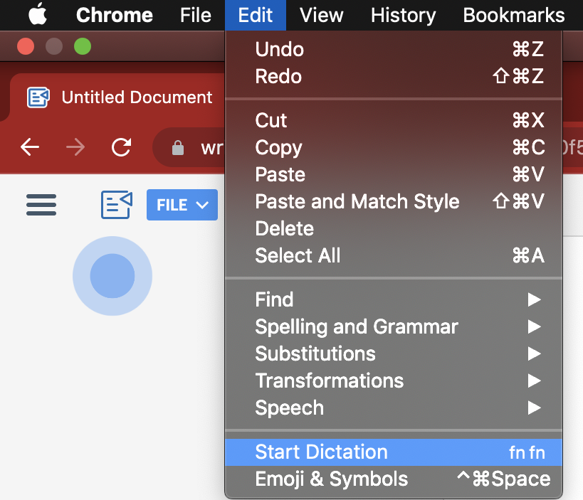 1. Click on the 'Edit' option in the browser menu bar > Start Dictation