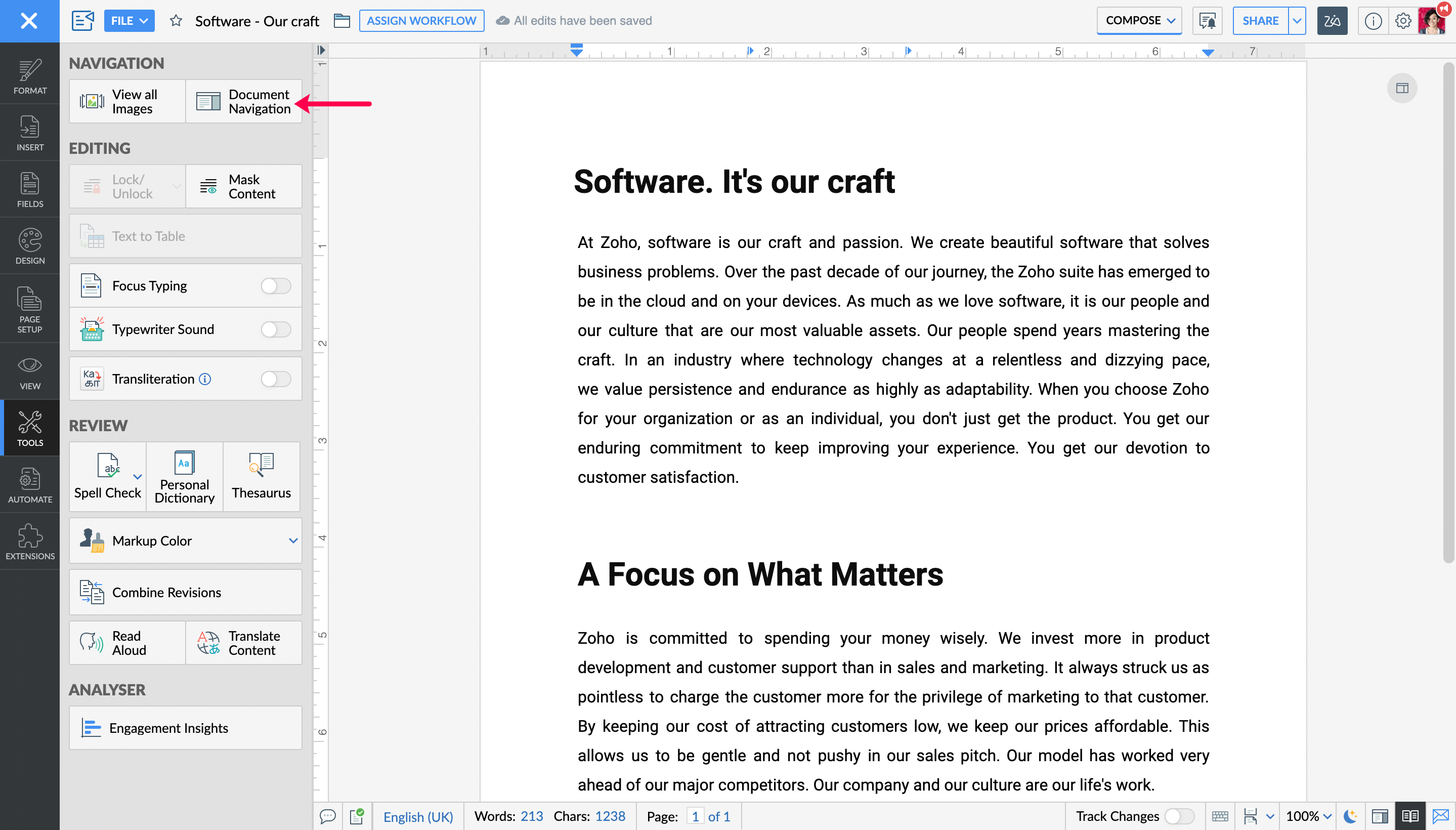 The Read Aloud feature in Zoho Writer allows you to have your document read aloud to you by a computer voice by using text-to-speech (TTS) to play back written text as spoken words. This can be helpful for a variety of reasons, such as: