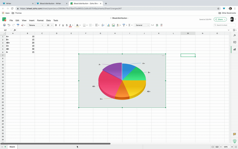 Writer is now powered by Zoho Sheet to let you insert charts in documents. The chart is linked to the data in the spreadsheet which means whenever data is changed in the spreadsheet, charts in Writer get automatically updated. To Insert a Dynamic ...