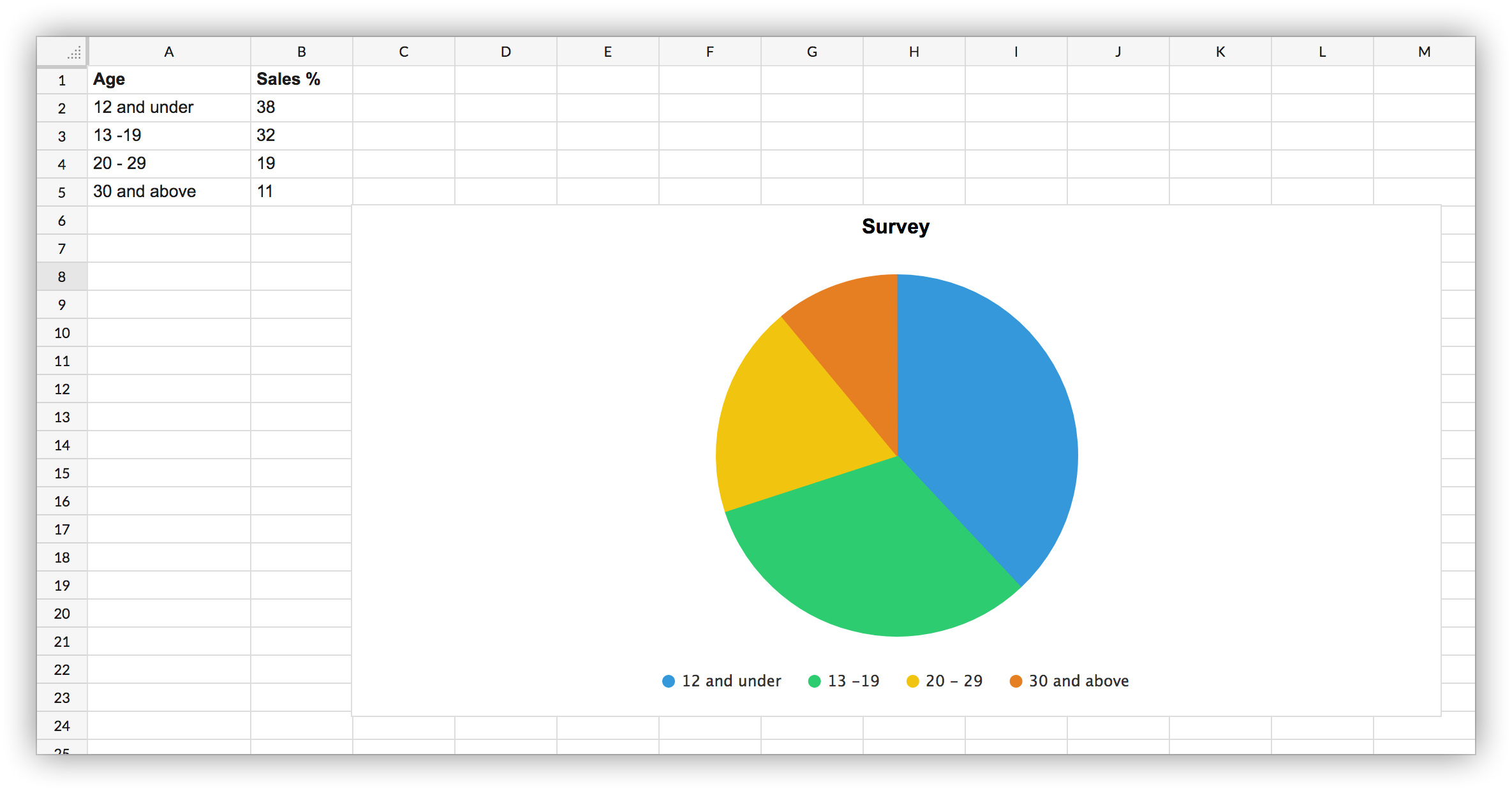 Once the table data is converted into a chart, the data can be edited in Zoho Sheet.