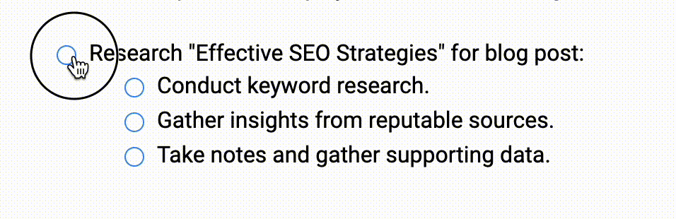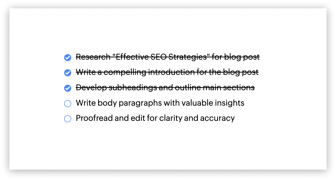 Create and manage tasks with customizable strike-through text in Zoho Writer. This feature allows you to easily keep track of completed tasks and enhance your task management experience. Here's a step-by-step guide on how to do it: