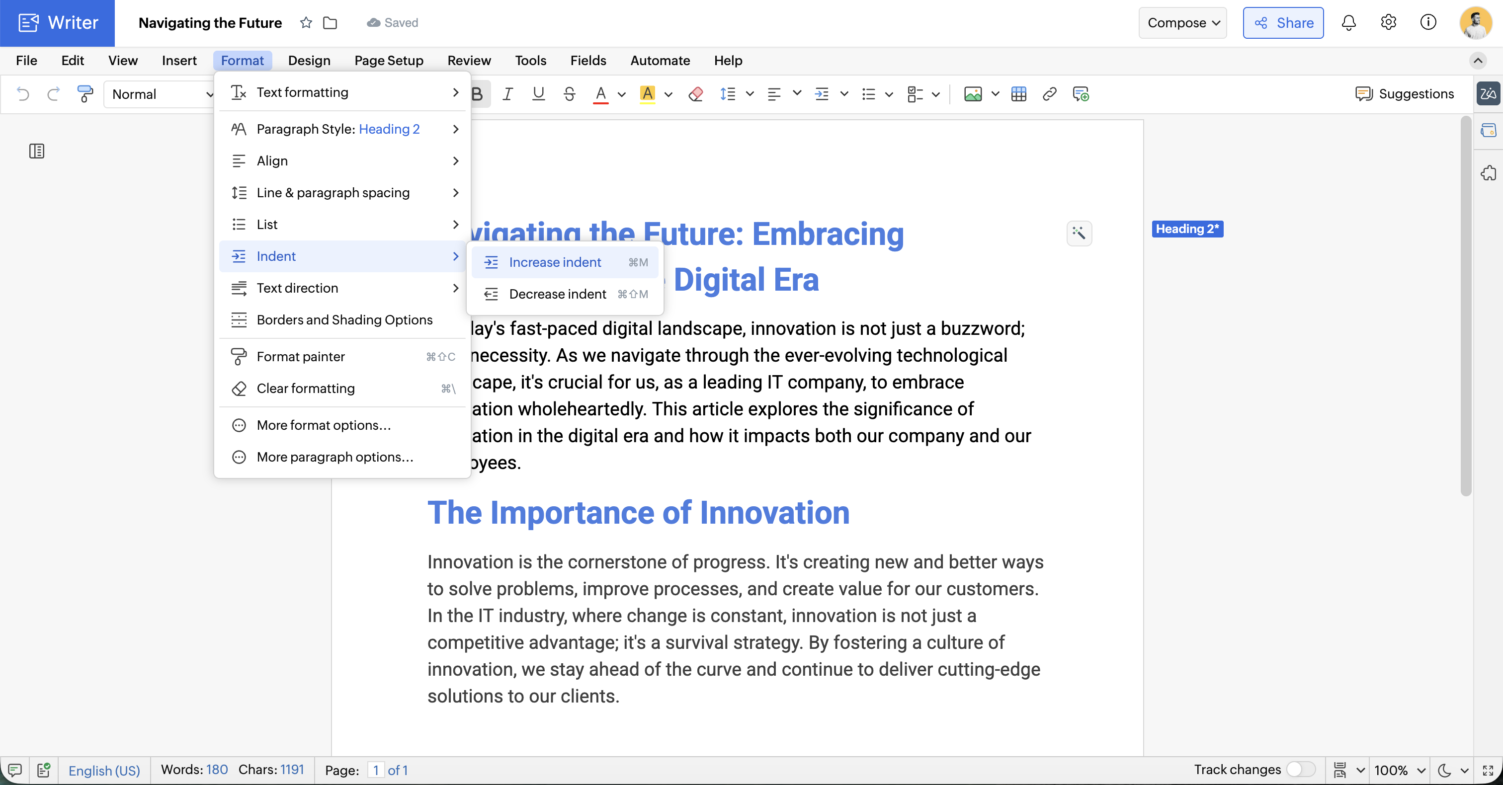 Writer comes with a set of advanced tools for more than just editing or formatting. These tools allow you to set indents, line spacing, insert borders to your document, and much more.