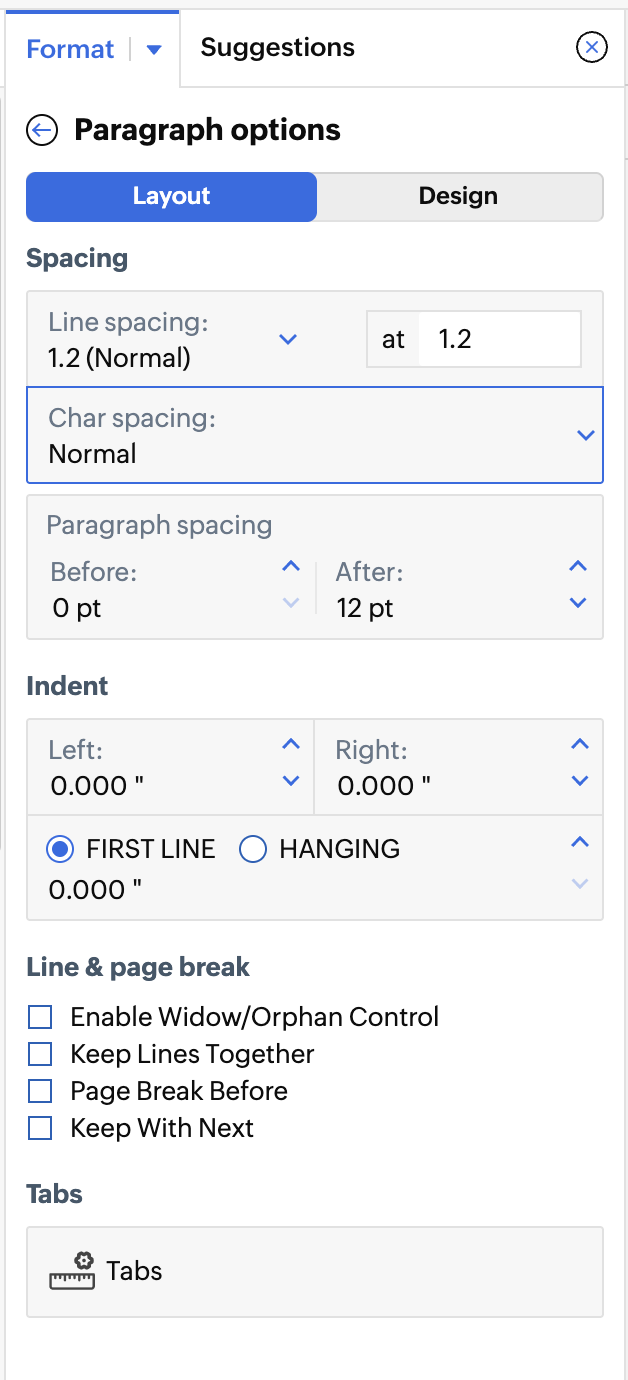 Keep Lines Together: Keeps the entire paragraph as one unit on a single page. When this option is enabled, if the whole paragraph won’t fit at the bottom of one page, it is moved to the next page.