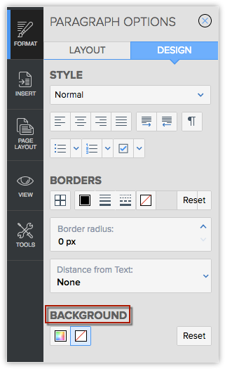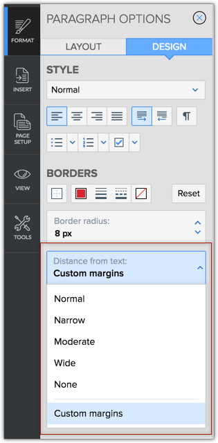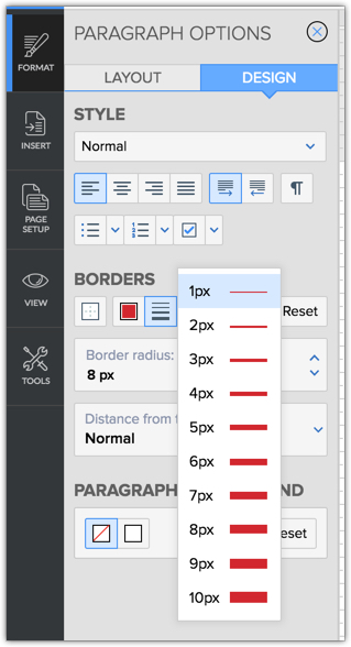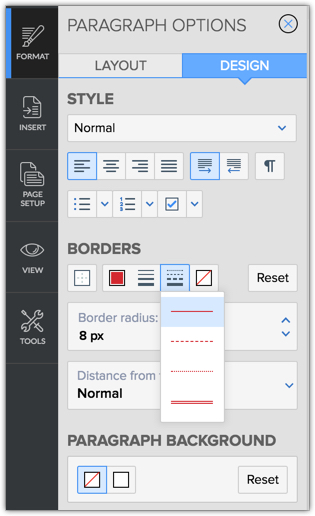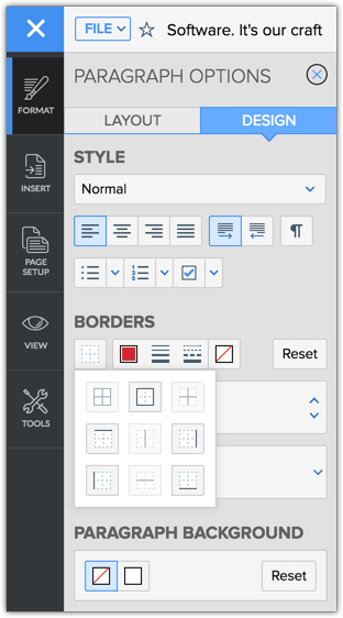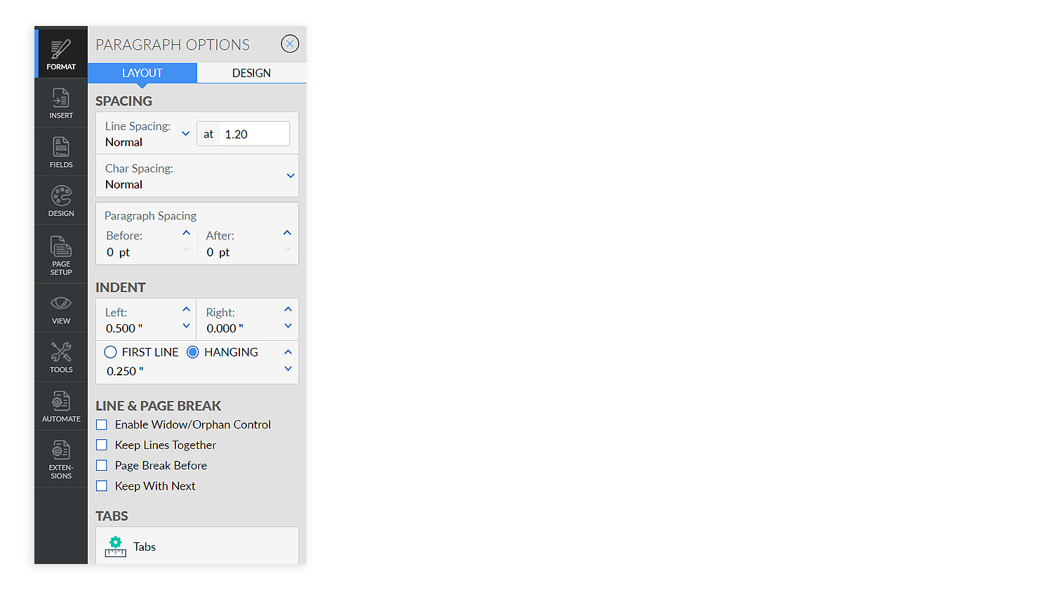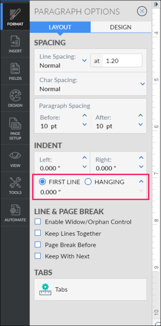 To view these options, click on the Tab icon on the top-left corner of the ruler.