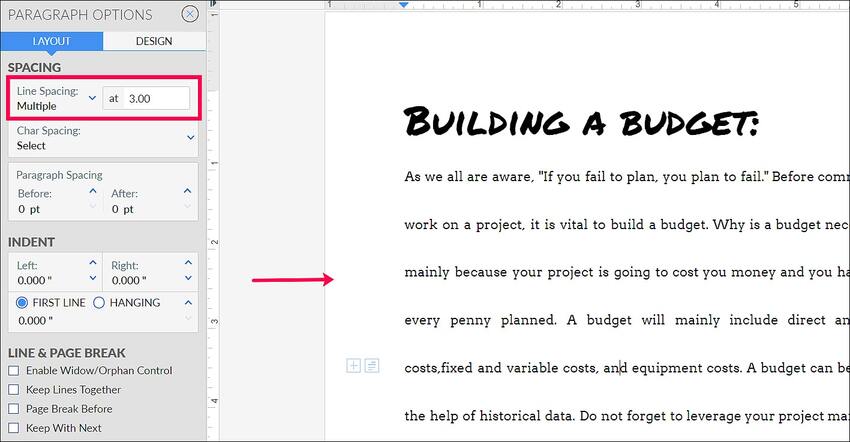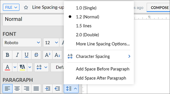To improve the readability of the content and optimize the legibility of the text, Writer helps you adjust the line spacing of your content.