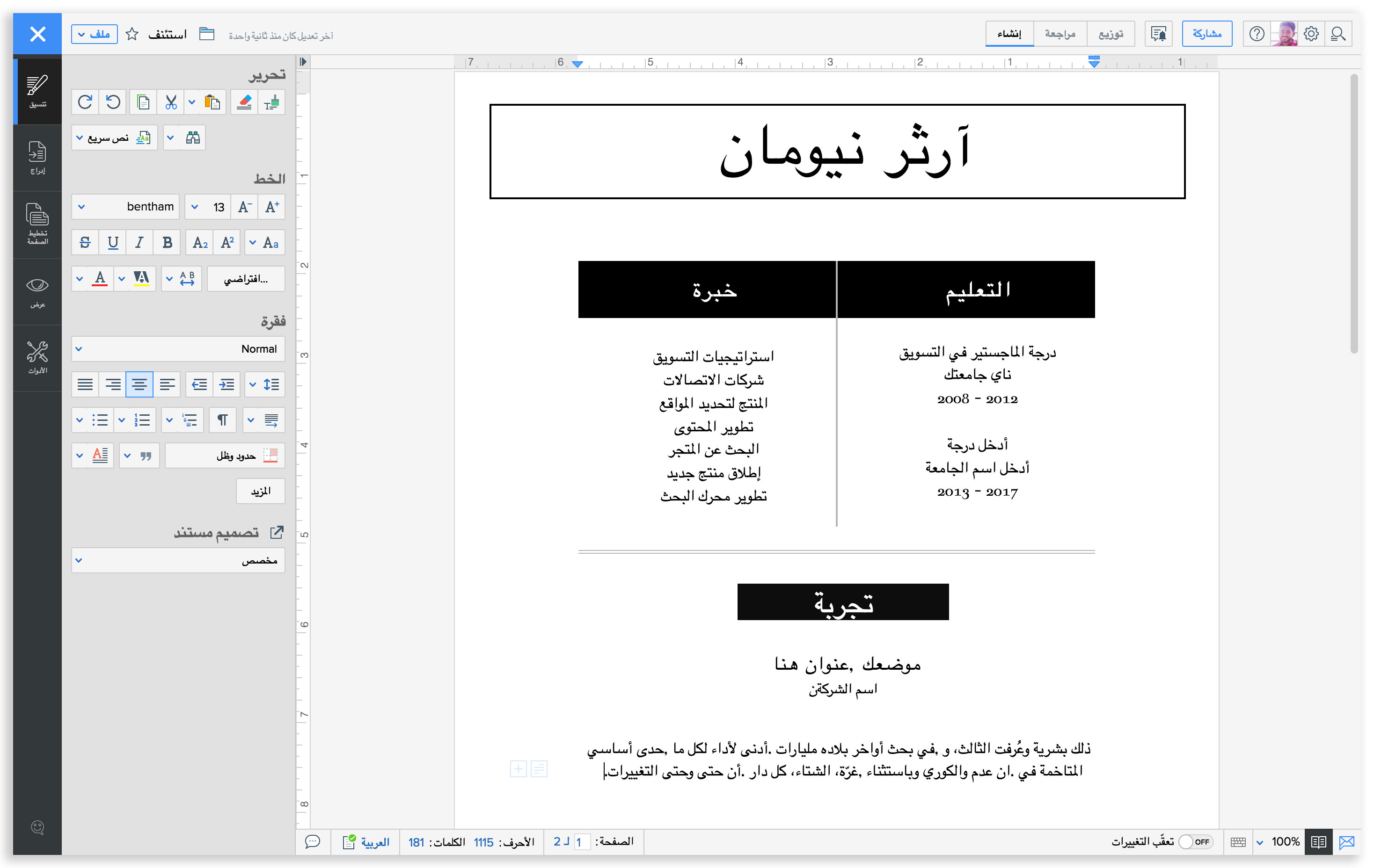 Writer provides support for right-to-left languages like Arabic, Persian, Hebrew, and Urdu. You can work with bullet points, punctuation, comments, and tracking changes and enhance your writing experience in all right-to-left languages. You can also place cursors and select combined letters with complete precision.