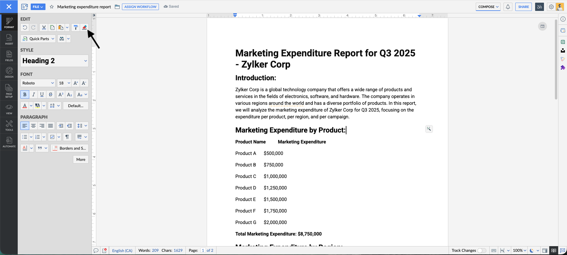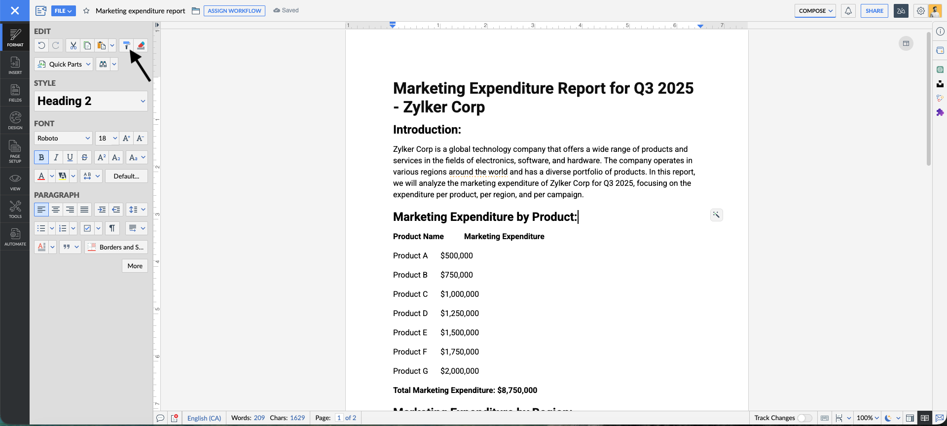 Limitation: You cannot copy and paste a full page along with its header and footer in Zoho Writer. At present, only the page content can be copied.