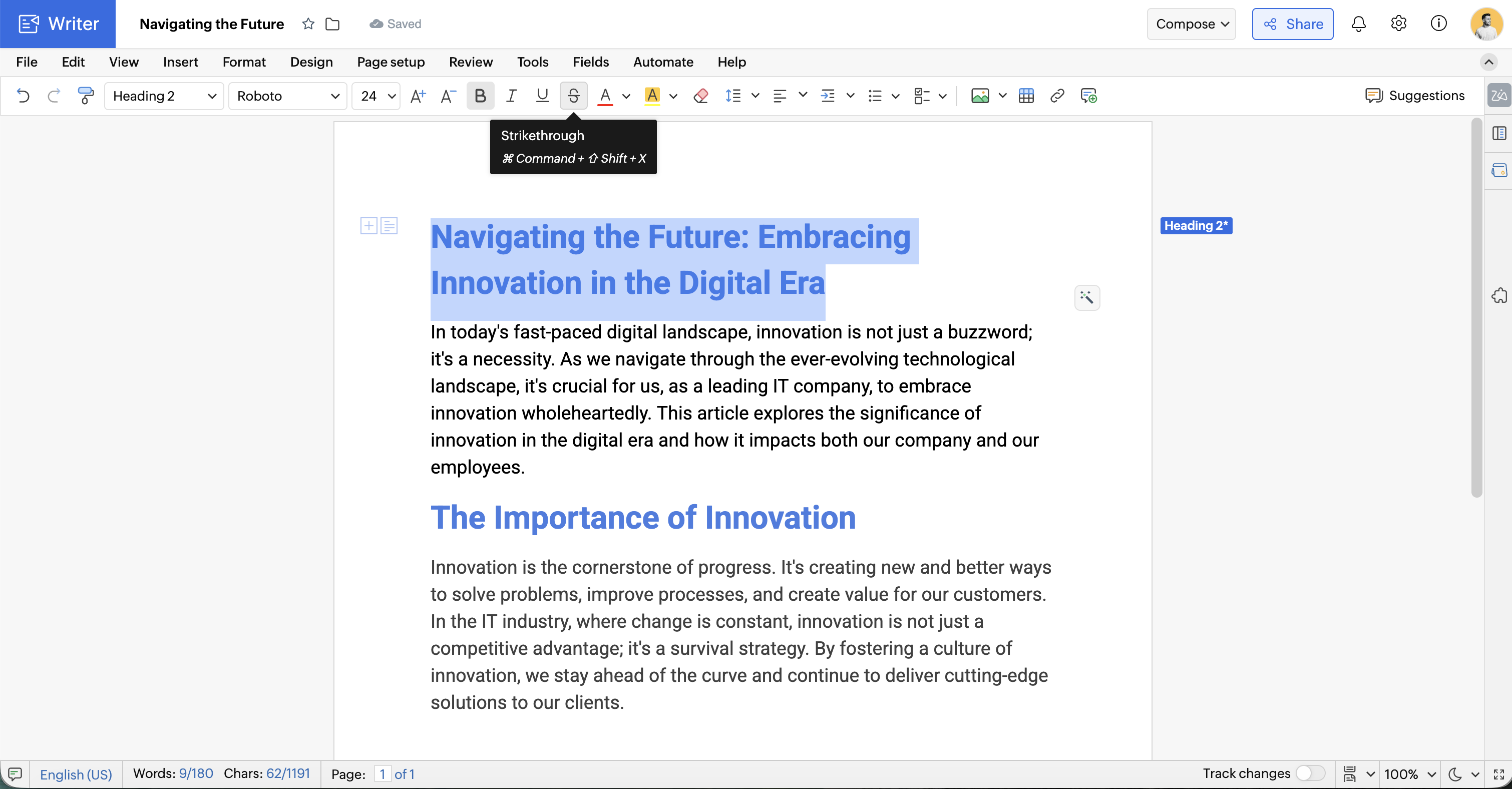 Limitation: You cannot copy and paste a full page along with its header and footer in Zoho Writer. At present, only the page content can be copied.Italic