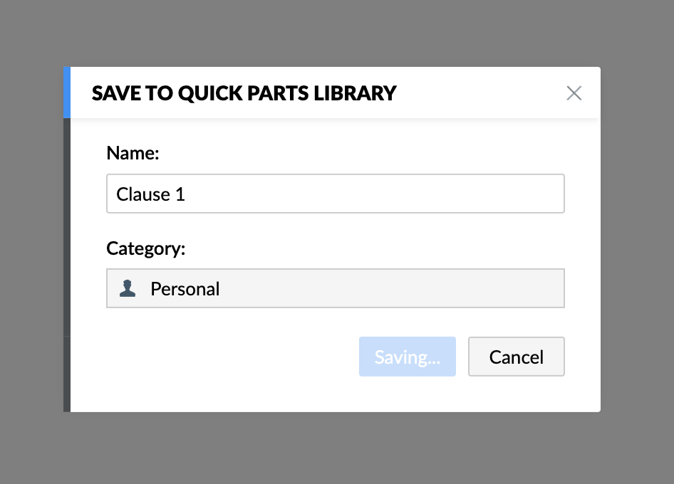 Click Save. Your reusable block is now stored in the Quick Part Library.