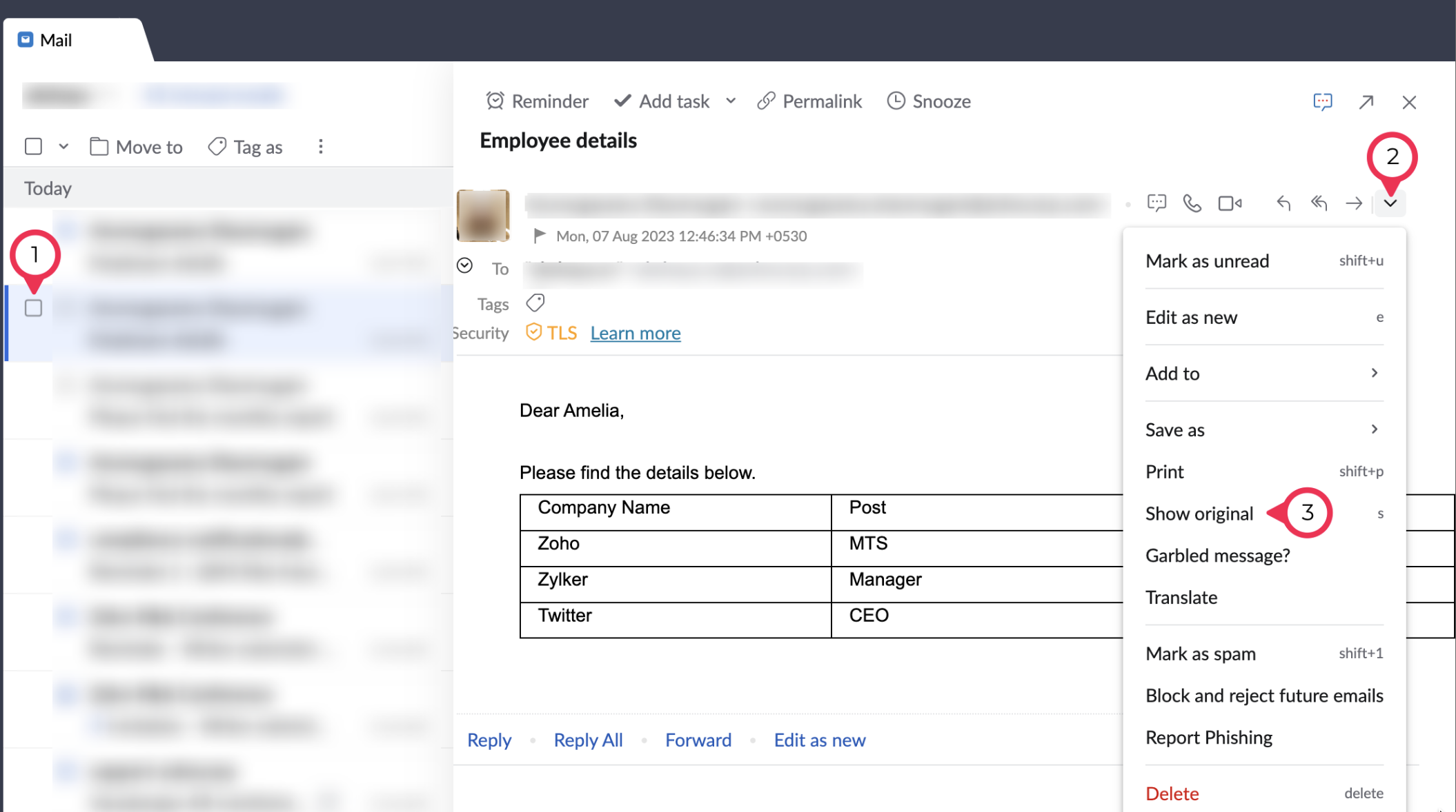 1. Login to your Zoho Mail account. Click on the email for which you need to get the message id.